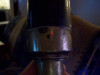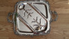 I was given this ashtray , it has a wooden box at the bottom and metal handle and top and a metal draw for the ash to fall into , and has metal spikes on it , It looks like it comes from a medieval time or place.