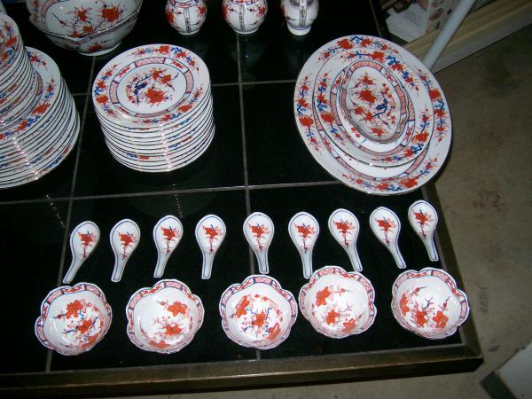 I have attached pictures of a 72 piece, 12 place setting with serving dishes. The dishes are in excellent condition. They are hand painted. I was given it as a gift a couple of years ago from a lady who purchased it many years ago from an antique dealer. I don't know anything about the dishes and I would appreciate any information you could give me including what their value might be.