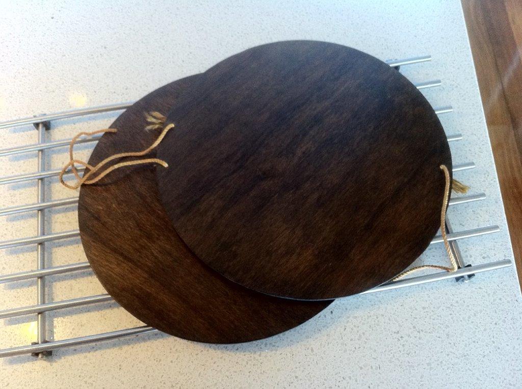 The timber is 310mm Diameter while the brass is 255mm Diameter.