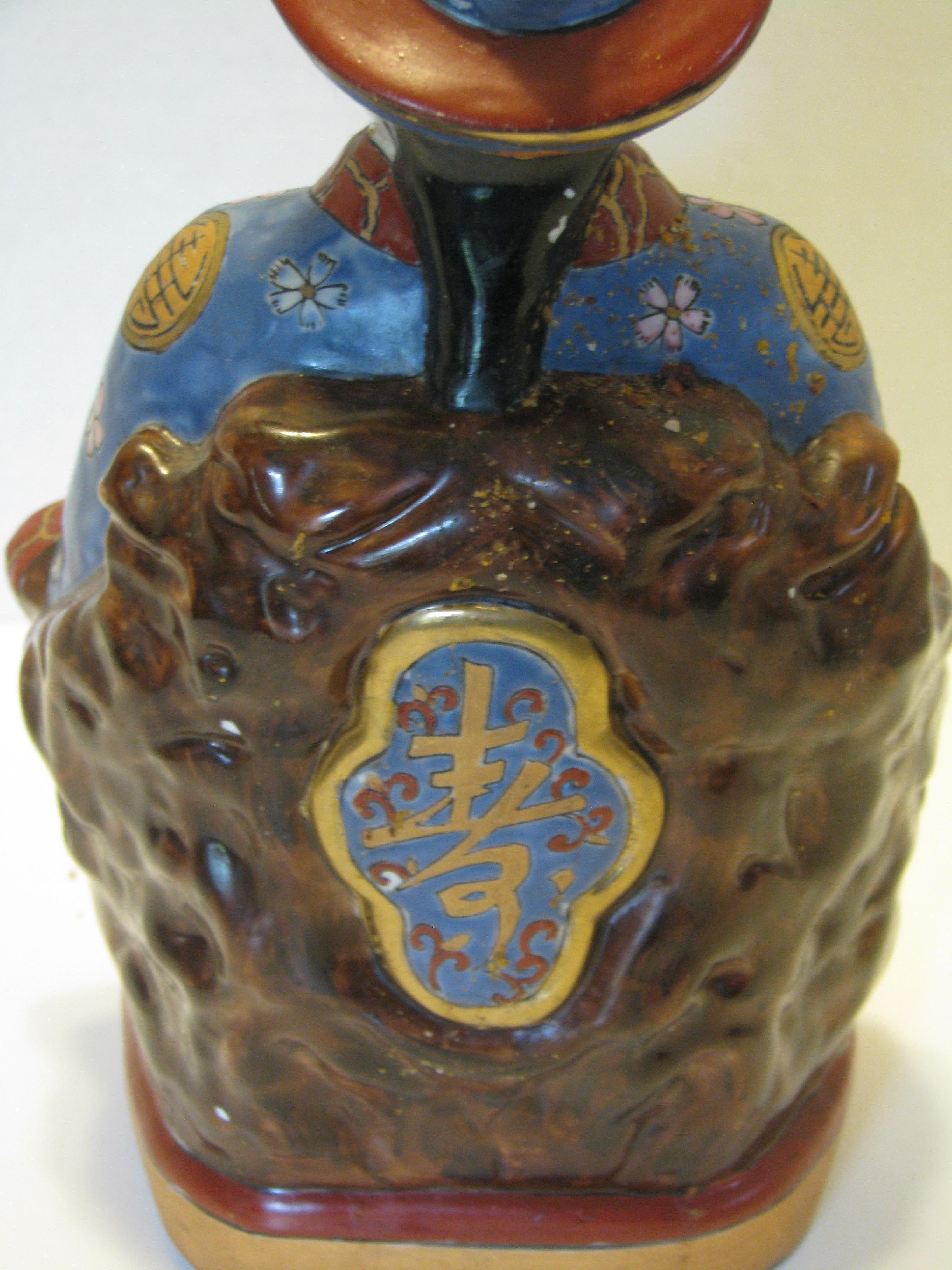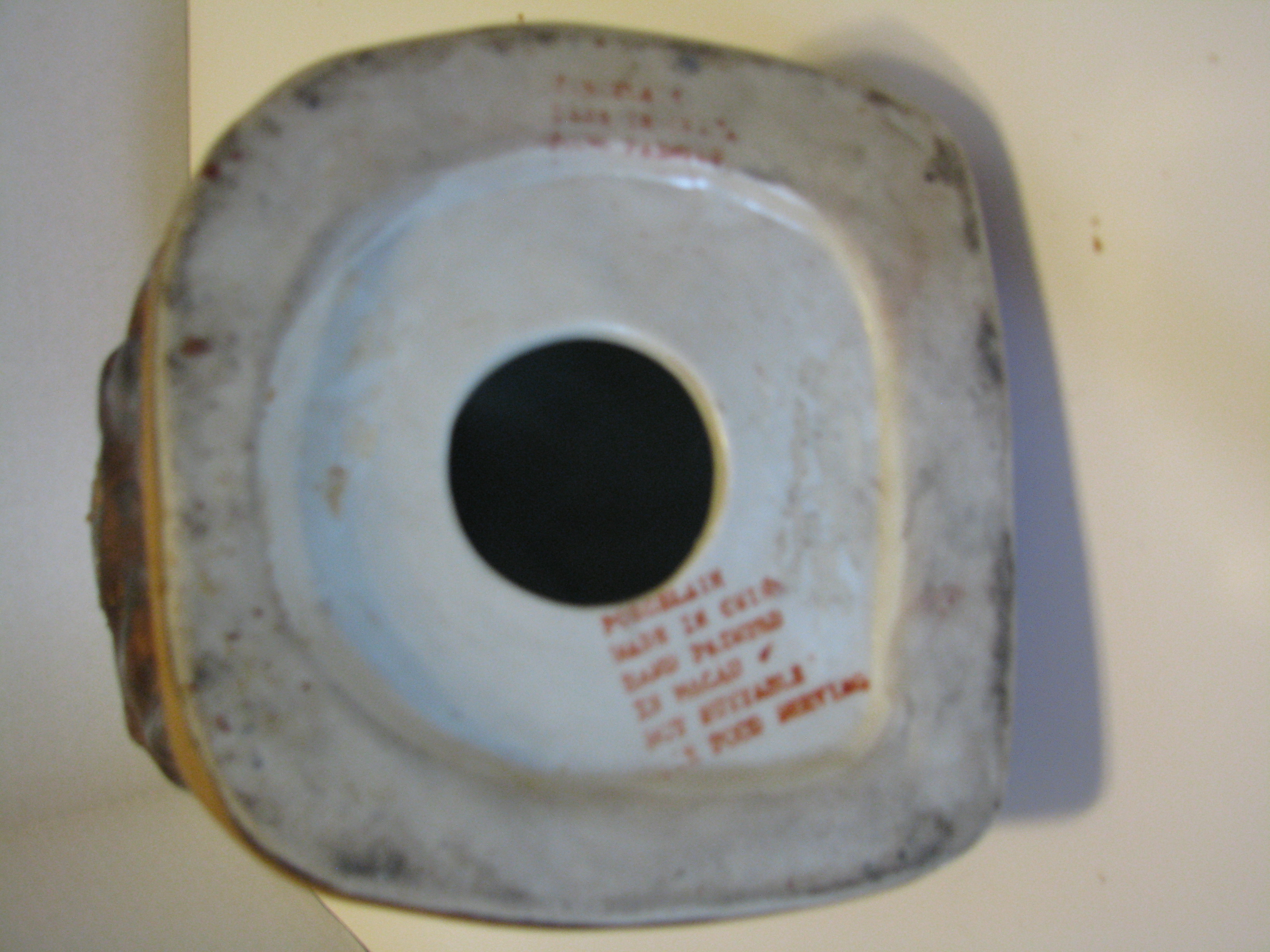 Hi Was hoping some one could give me some info. Has red lettering on bottom (porcelain made in china hand painted in macau hot suitable for food serving). also has more writng in red on other side on bottom I cant make all of it out (tercelai made in ck raw paints) thats the best I can read it. Its 10 1/2 in high and 4in at the base in long. Bought at a flea market.