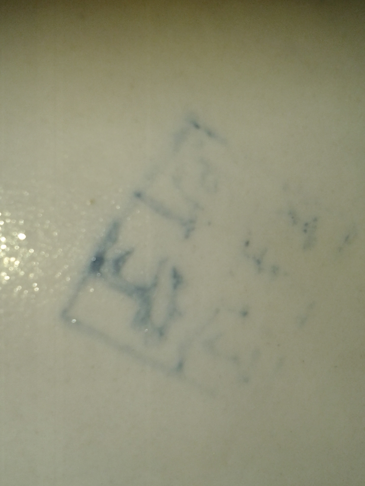 Asian or chinese mark on the bottom of it in blue ink
