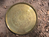 Asian style plate measuring 12 1/2 inches in diameter with hand painted detailing in gold, red and yellow. Distinctive Asian lettering signature on underside.