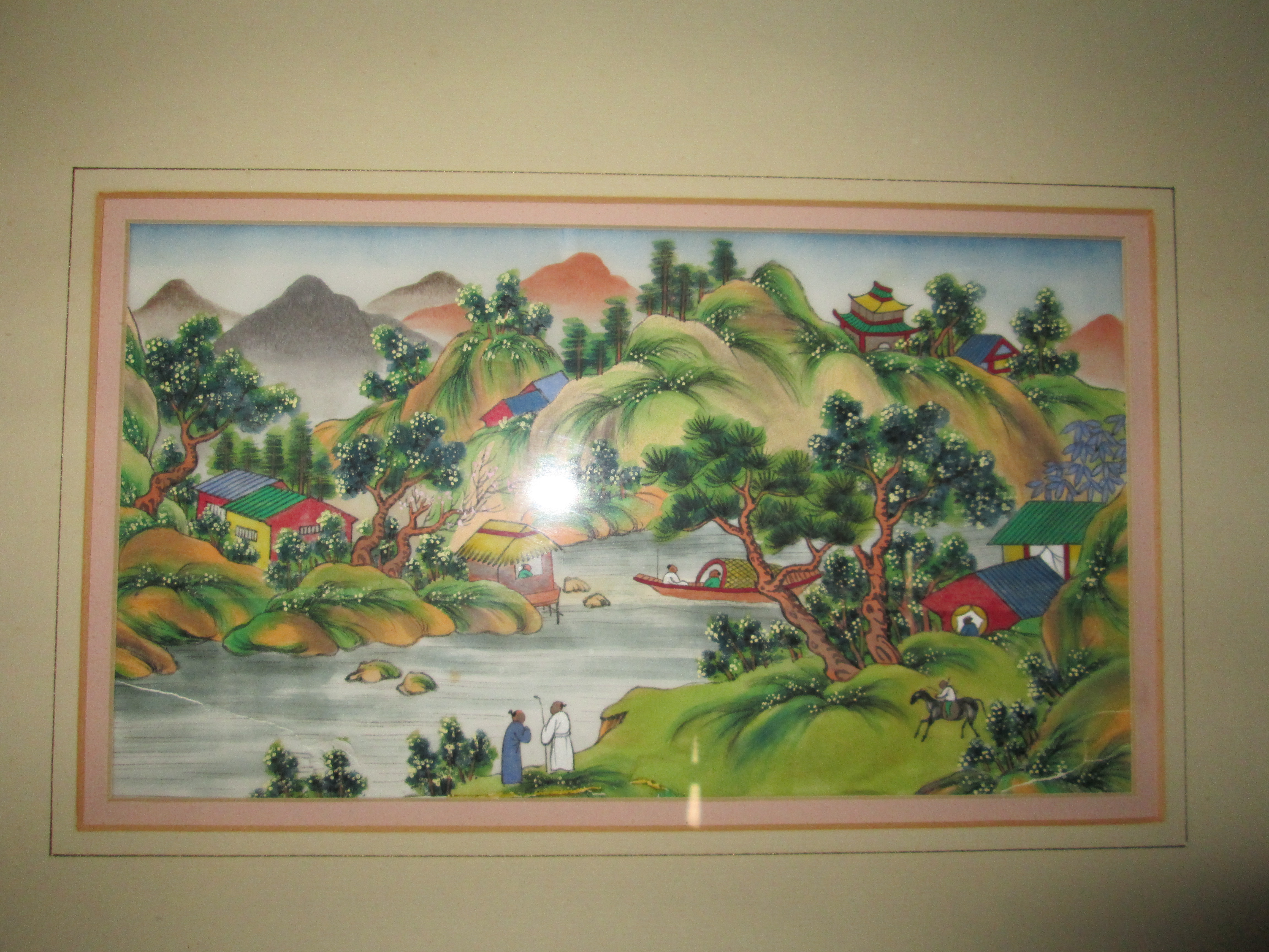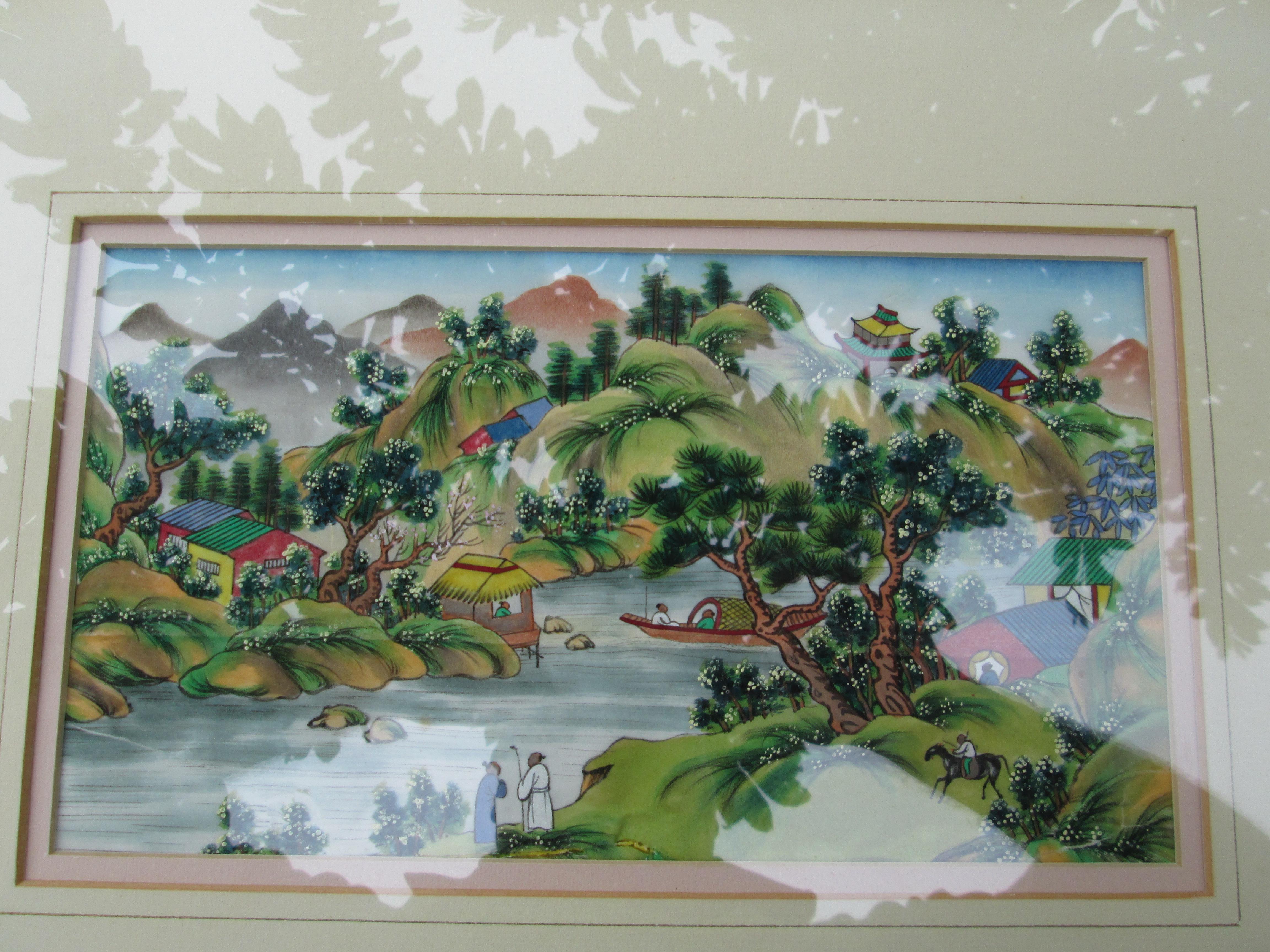 the scene is a a japanese river valley.its is on rice paper
