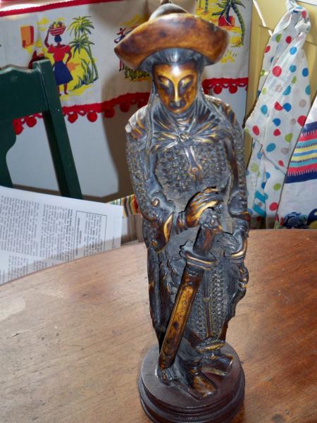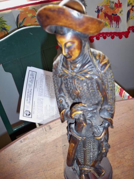 HAND CRARVED WITH ALOT OF DETAIL. IT IS GLUED TO A WOODEN BASE I BELIEVE WAS ADDED LATER. THAT IS ALL I KNOW ABOUT THE PIECE.