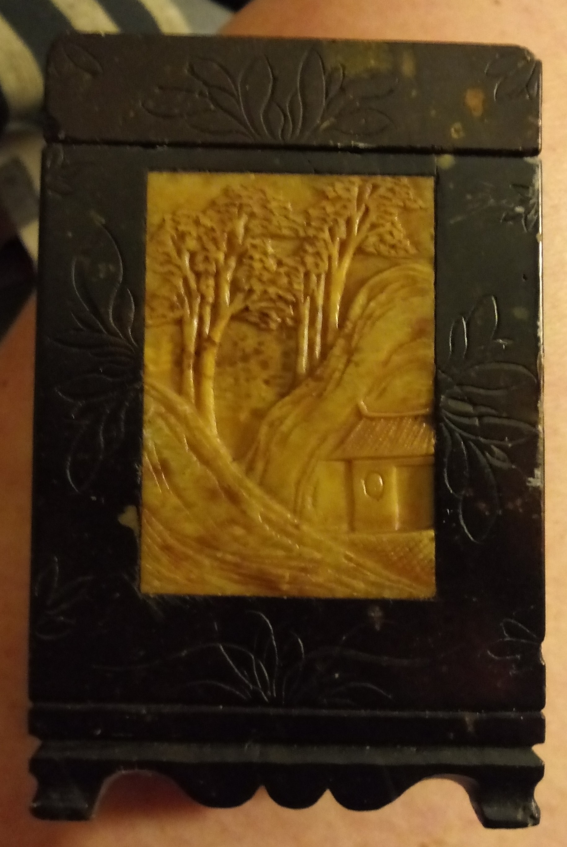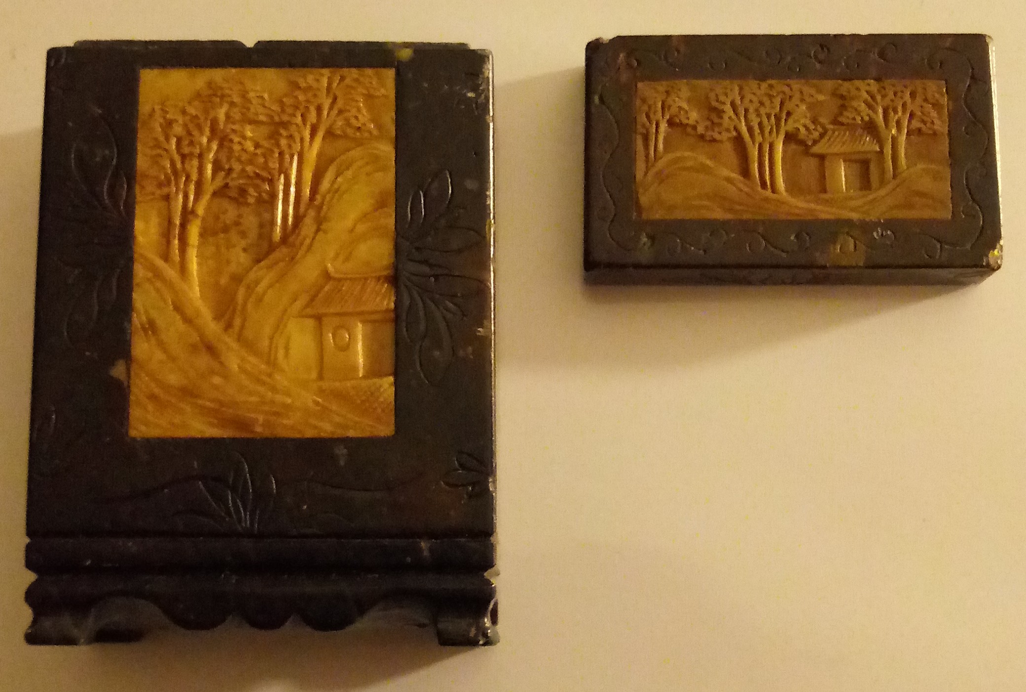 Hardstone about 5" high looks like jade inlay caving