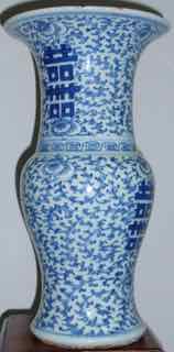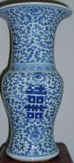 Pictured is an asian vase I believe. Purchased at an auction and was told by auctioneer it was a very old asian vase. It is 15.5" tall and weighs 6 lbs, 15.5oz. Blue designs throughout plus some type of asian writing on the vase. There is a signature on the bottom. The outside is smooth but I can feel bumps where some of the designs are. There aew no cracks but a few chips that reveal what looks like a brown like pottery underneath. The bottom edge is durty I guess from use and age.