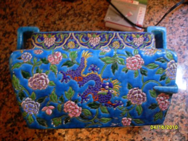 All I know is I LOVE IT..... the dragons and flowers are raised up a bit off the piece and the color of blue is amazing.