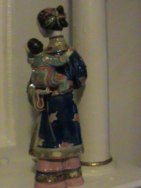 I know very little about this statue. It is a Asian women carrying a child on her back. It is done with the finest of detail. I bought it about 10 years ago and I don't remember how much I paid for it. All's I've done is admire it since that time. She is almost 15 inches tall and four and half at the widest point. I believe it is a Japanese woman.