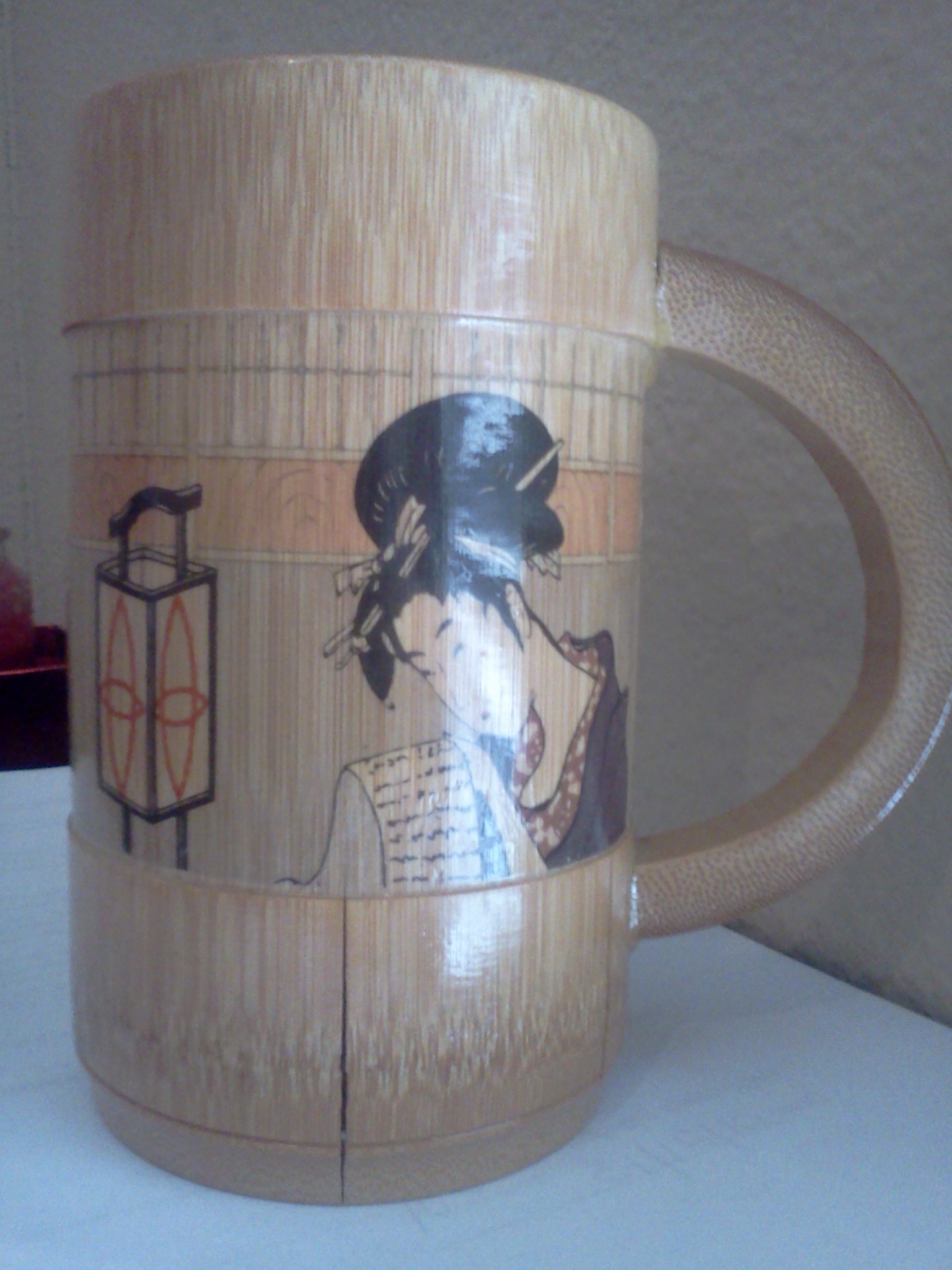 > I have an Oriental wooden cup about 4.5 inches tall. It is a light brown