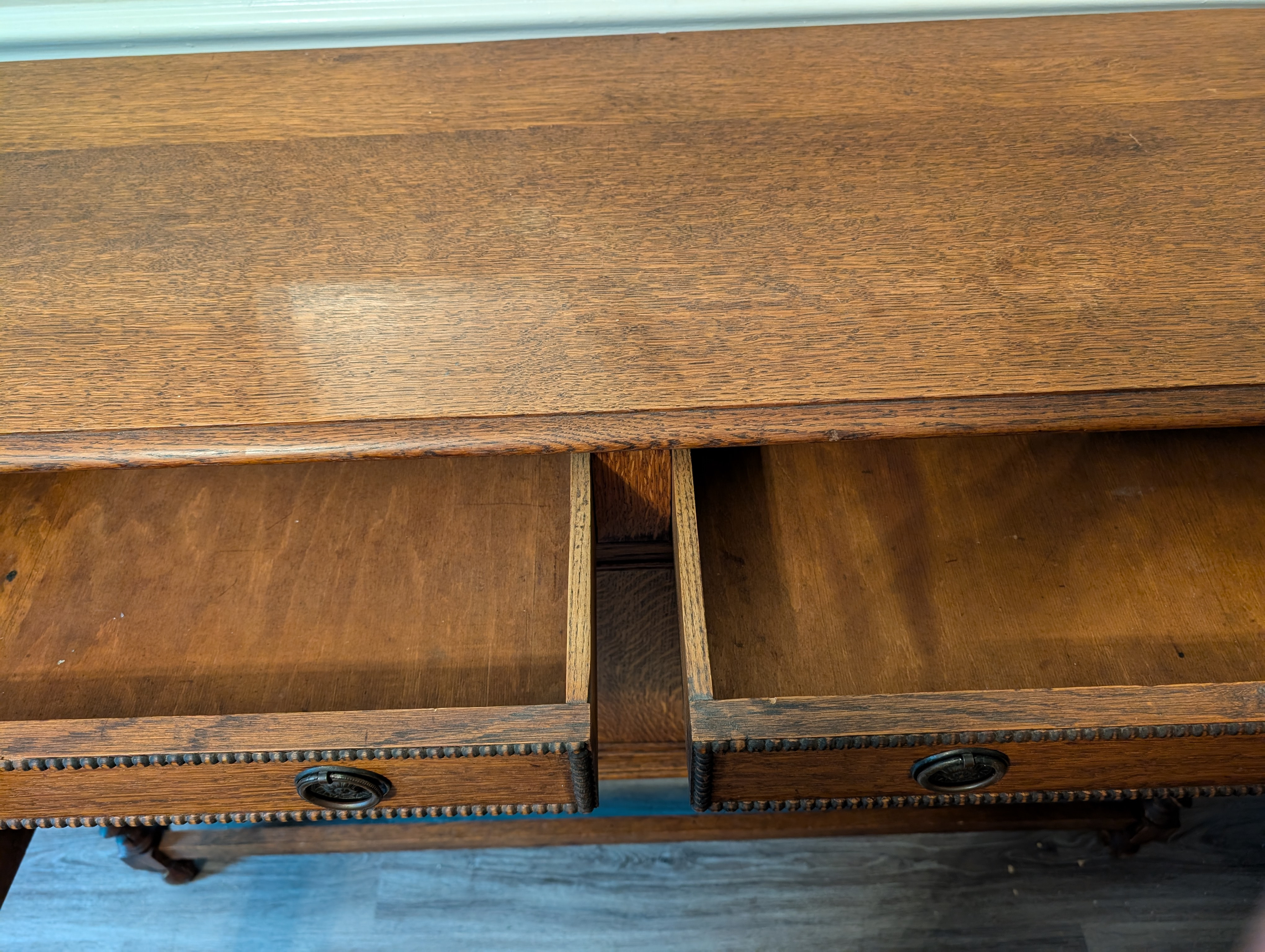 You own a handsome early 20th-century Jacobean Revival sideboard that showcases quality craftsmanship and decorative appeal. Its condition is quite good for its age, and its stylistic features—particularly the barley twist legs and beading—make it desirable to collectors, decorators, and vintage furniture enthusiasts.