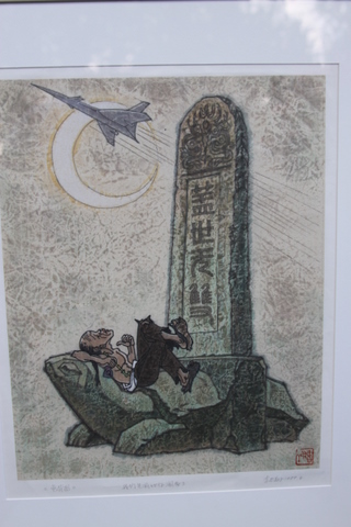 I believe the artist is Li Zhong Xing (if the translation I received is correct). There are also two separate entries at the bottom of the picture. From what I'm told, the first reads "Turtle back painting", while the second reads "We were richer than you before". I'm trying to find out what (if anything) I can about the print, the artist and the print's value. I appreciate any help you can provide! If you have any questions, please let me know and I'll try to answer if i can.
