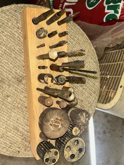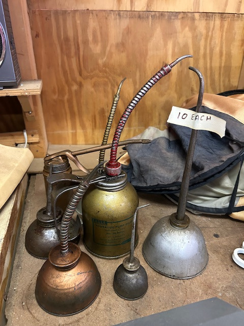 Old tools, oil cans, dent puller