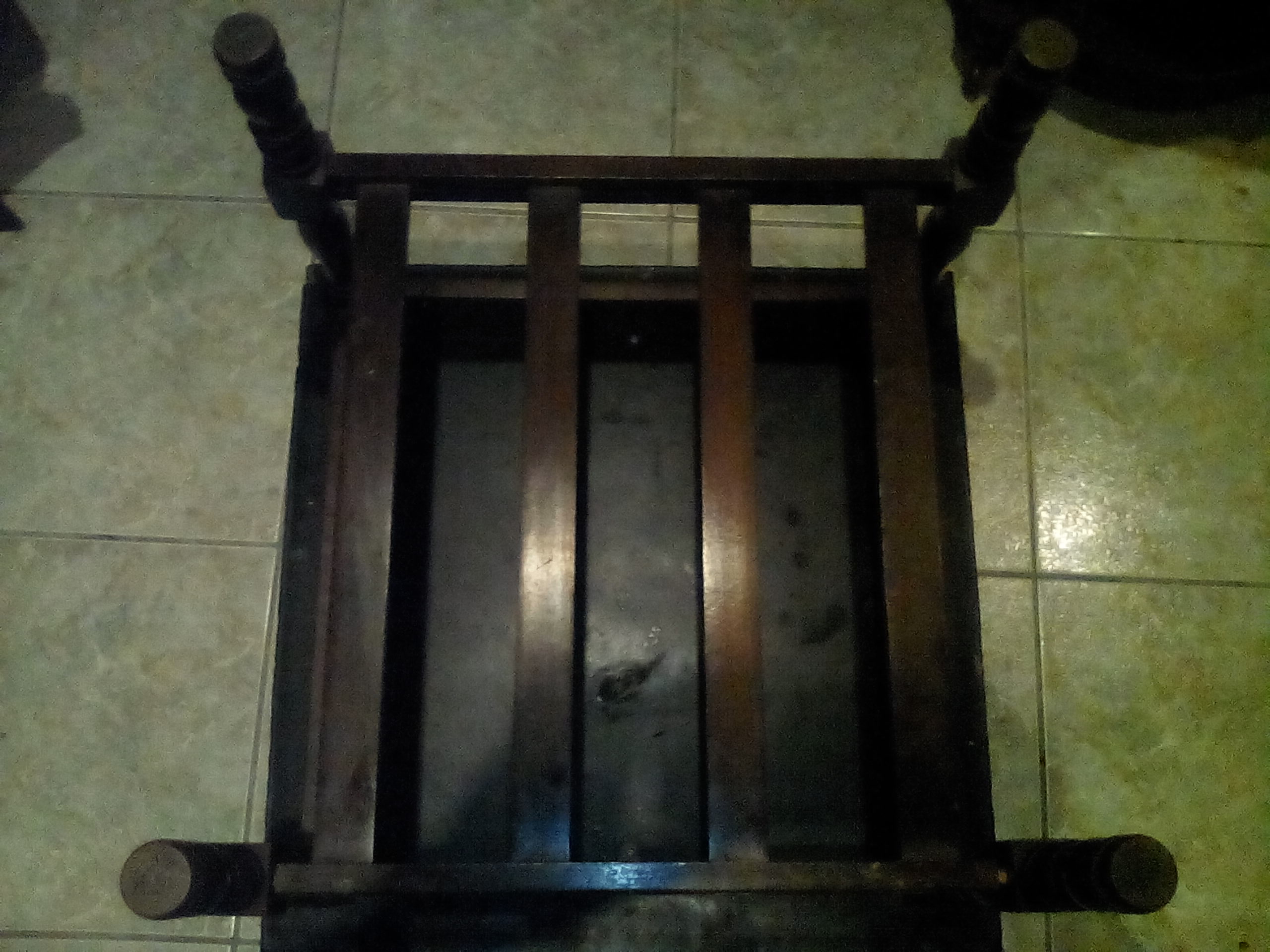 It has wing nuts holding pieces of wood together on the underside so thats an indication of age.