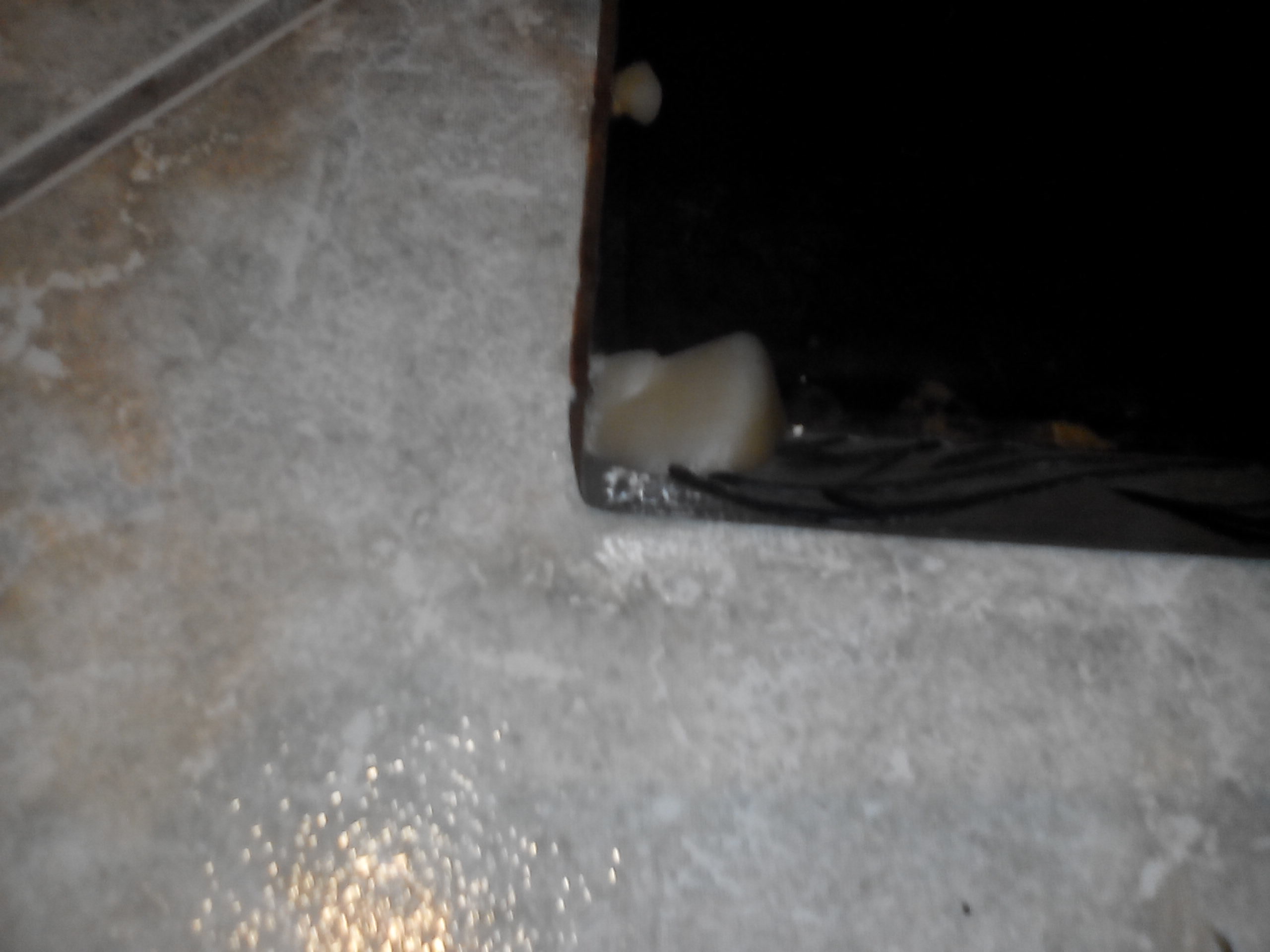 The table top also appears to have some sort of copper on it as when it gets wet or is cleaned, it temporarily turns green. It has a chip on the underside (which is painted black) of one corner which reveals a sort of browny/yellow resin I think.