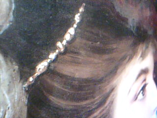 IT IS DONE WITH RAISED PAINT IN CERTAIN PLACES LIKE THE NECKLACE YOU CAN FEEL & SEE HOW 3D IT LOOKS, HER EYES, HER HAIR PIECE, THE FEATHERS ETC.