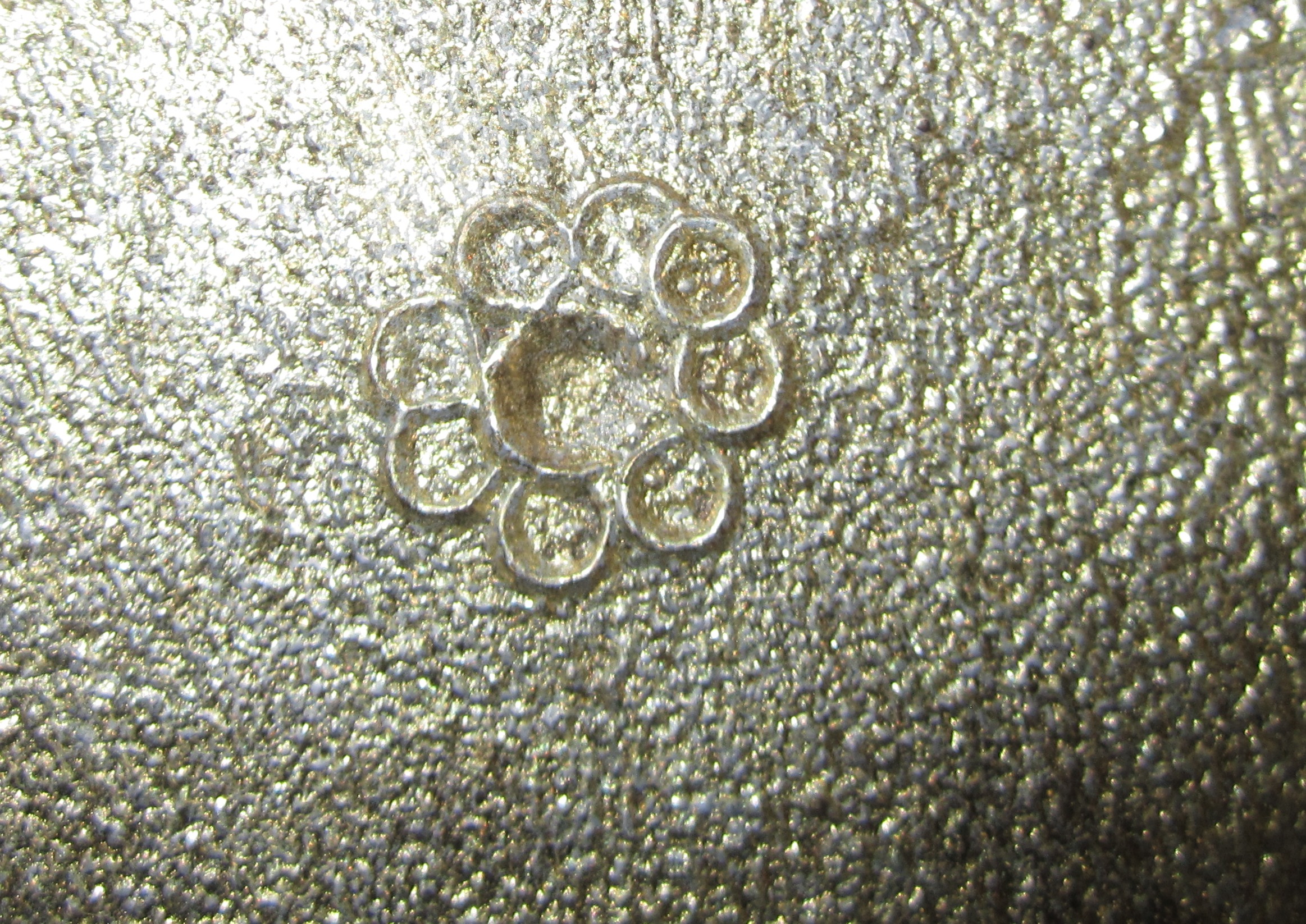 The following manufacturers mark is clear: ©L&L WMC and the number 8696 also, there is also a series of circles stamped in circular pattern - it looks like round leafed daisy
