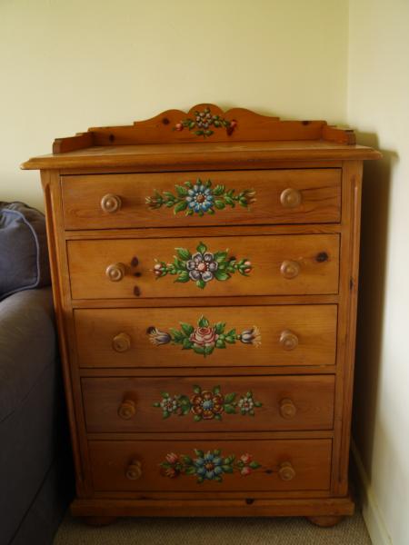 Austrian pine hand-painted flowers chest of drawers 1950