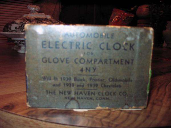 Glovebox door clock for 1938/1939 chevrolet 1939 buick,pontiac,oldsmobile in it's orignal box brand new never installed still has paper tags on wires for power, ground, lamp has instruction sheet [2ea] even the orignal cardboard packing electric clock for glovebox door 4-NY. My sons and i restore classic cars for a hobby but we haven't done any old enough that this would work in.
