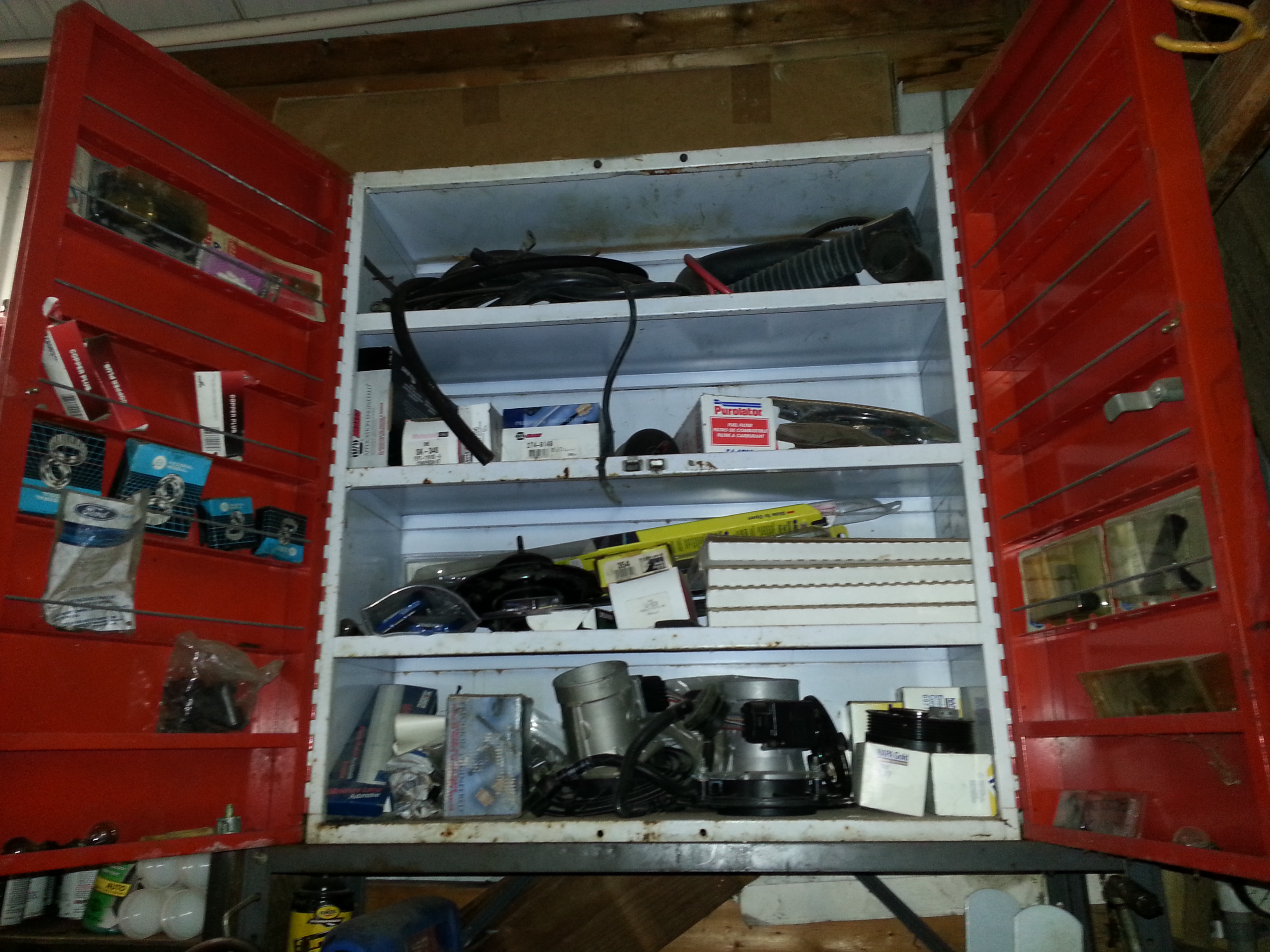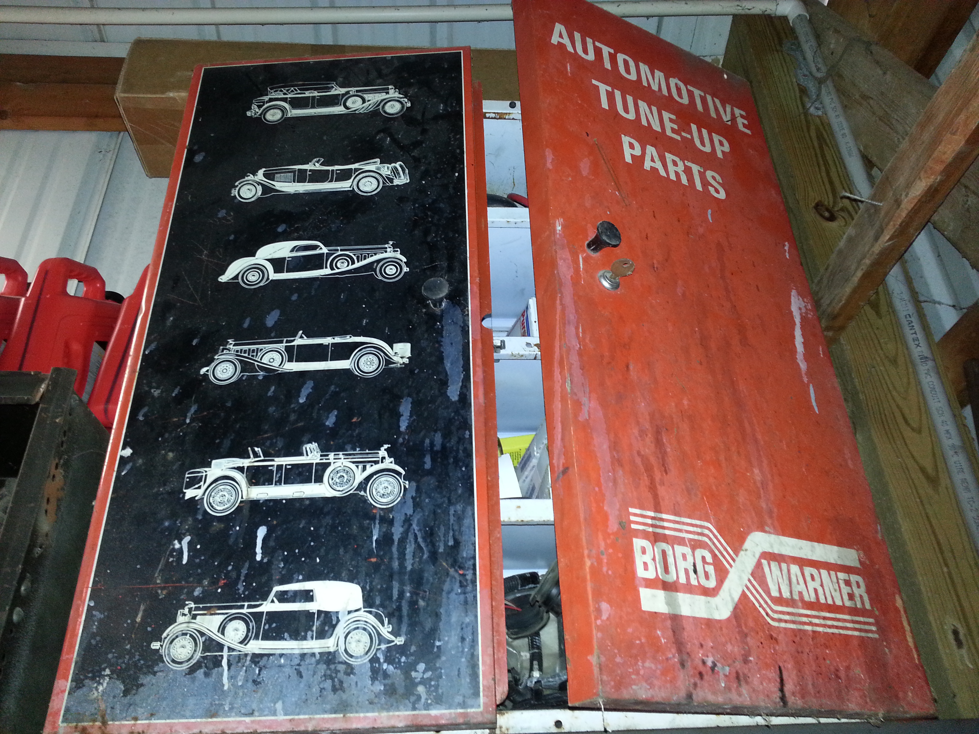 I believe these cabinets originally held the few auto maintenance items that were necessary back in the day i.e. spark plugs etc. for the limited auto models that were serviced.