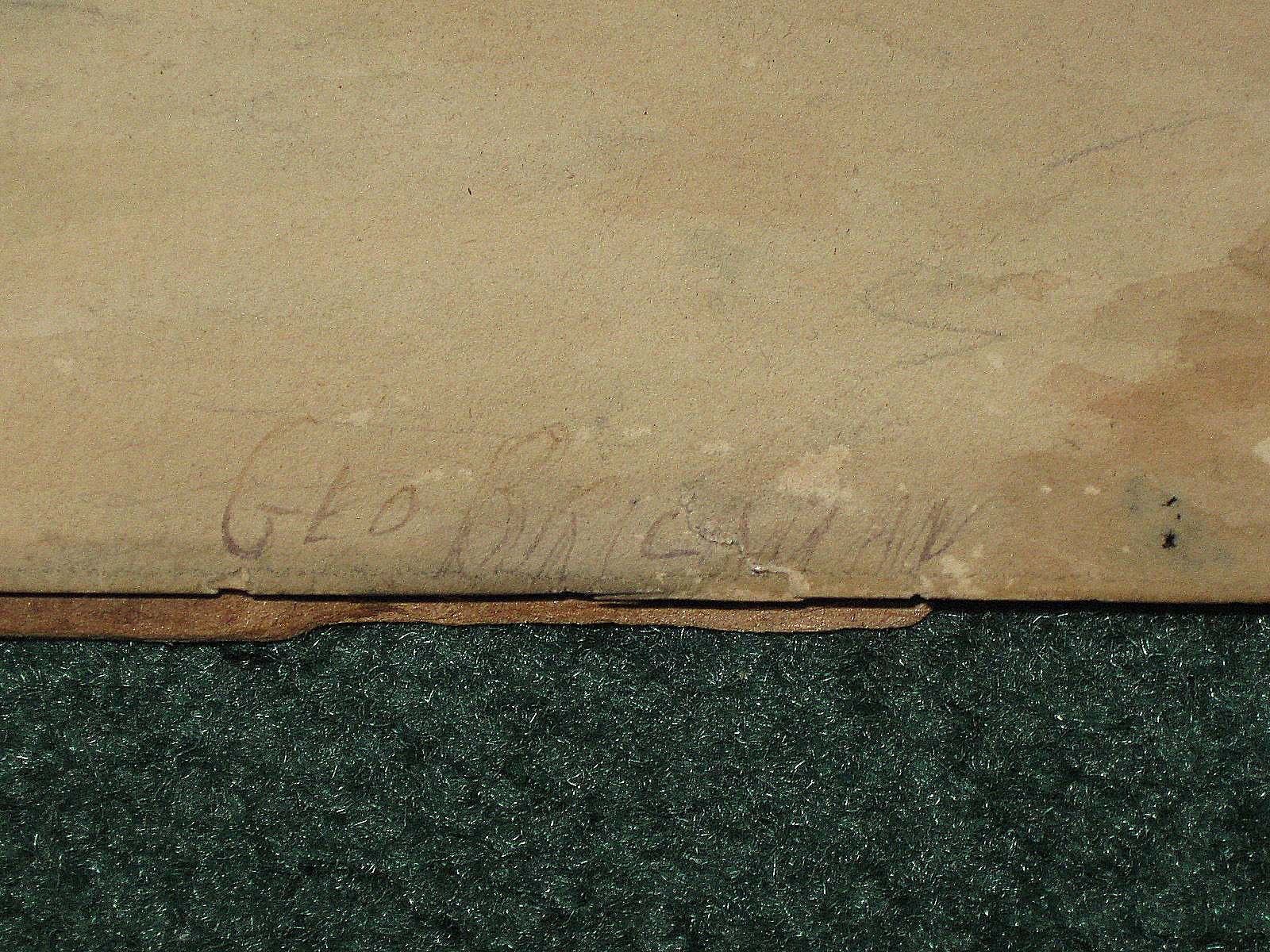 The artist is scribed as Geo (George) Brickman. The date is unreadable, but the paper looks to be very old, and the card stock backing is very aged and crumbly on the edges.