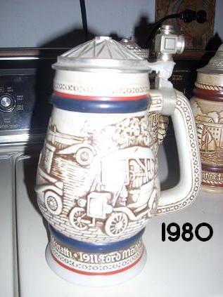Steins are ceramic with pewter lids.