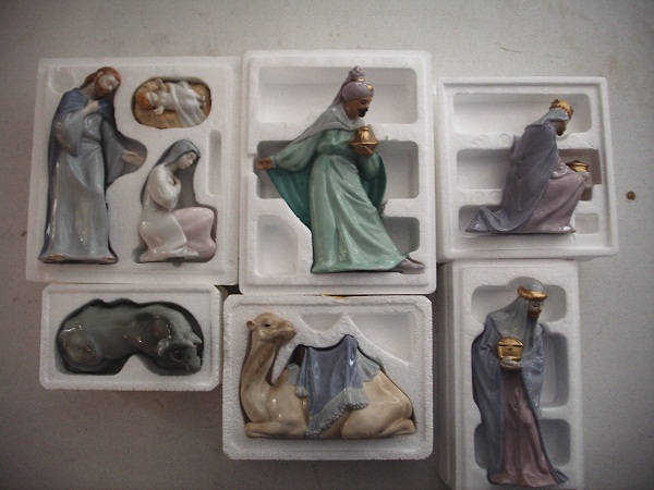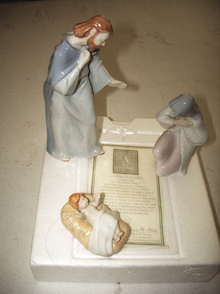 This is an 8 piece Avon nativity set. Still in original packaging and in mint condition. Contains: Mary, Joseph, Baby Jesus, 3 wisemen, camel & cow.