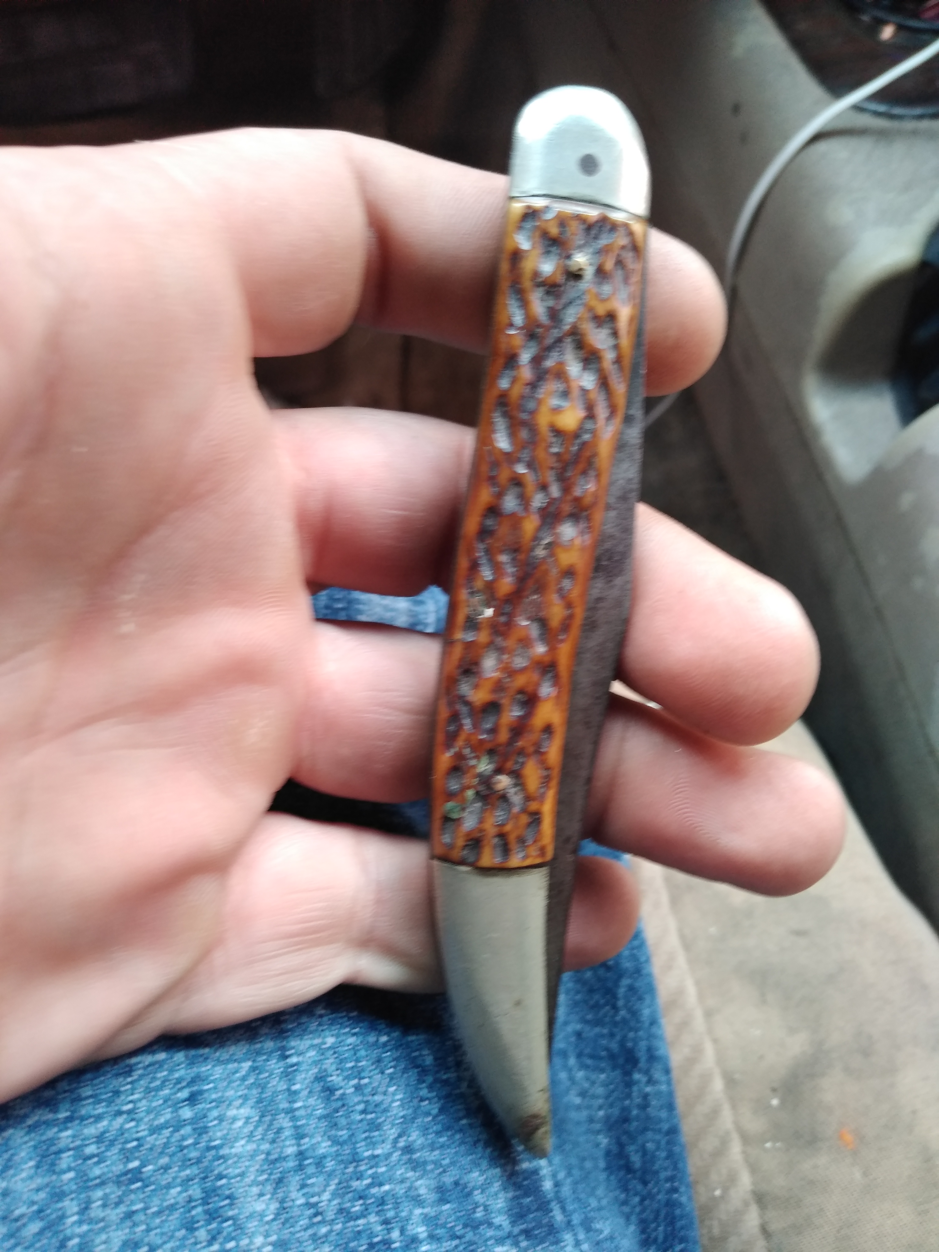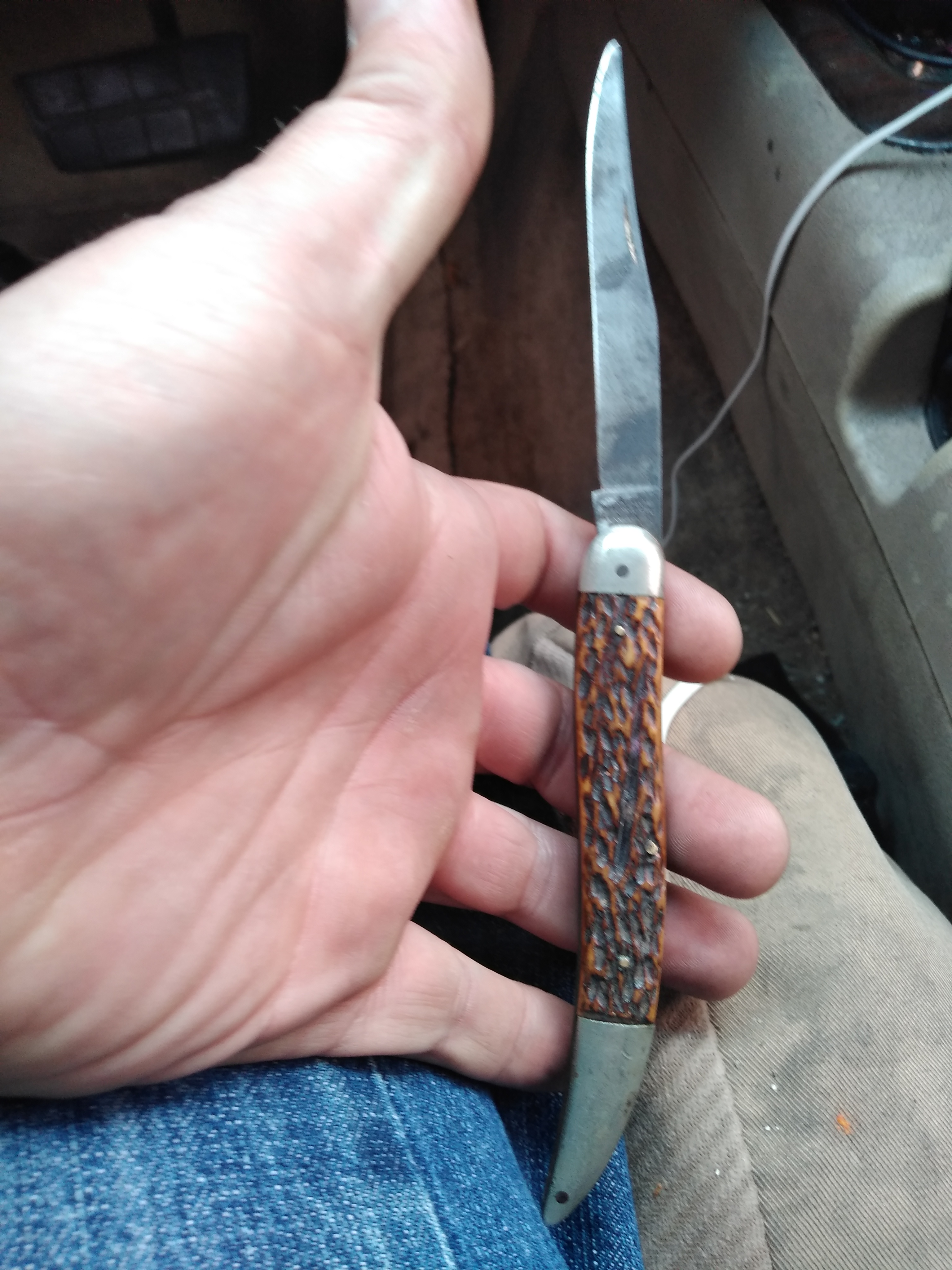 Description Old knife. Bout four inches long while closed. Says aw Wadsworth and Sons Germany handle looks bone or antler maybe.