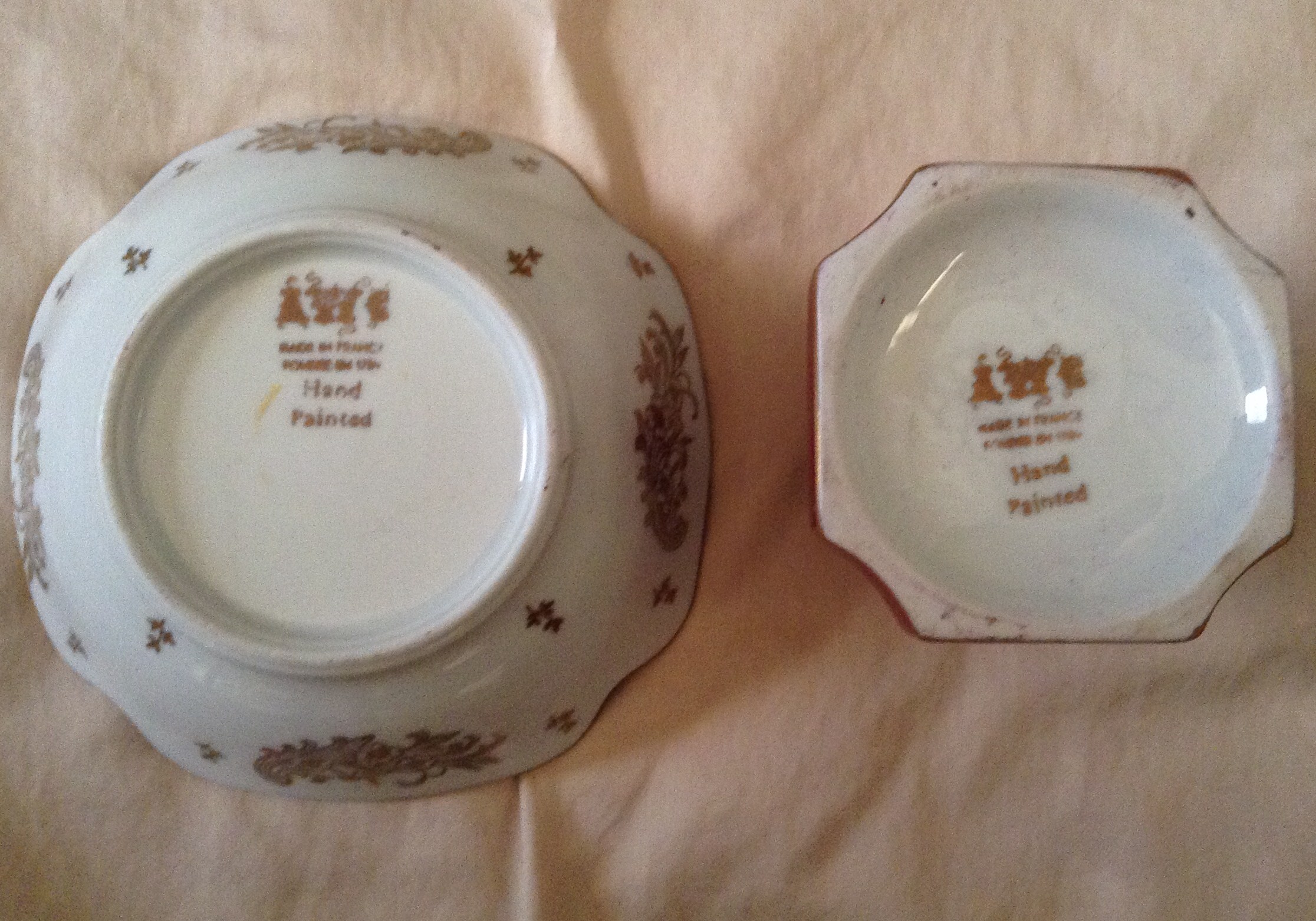 I am not sure if the Marking on this iem is also used as a Limoges? I havent been able to find out much about this bowl with pedestal. Nothing is wrong with it beside that it just became unglued. I woudl really like some information on the brand and sale value.