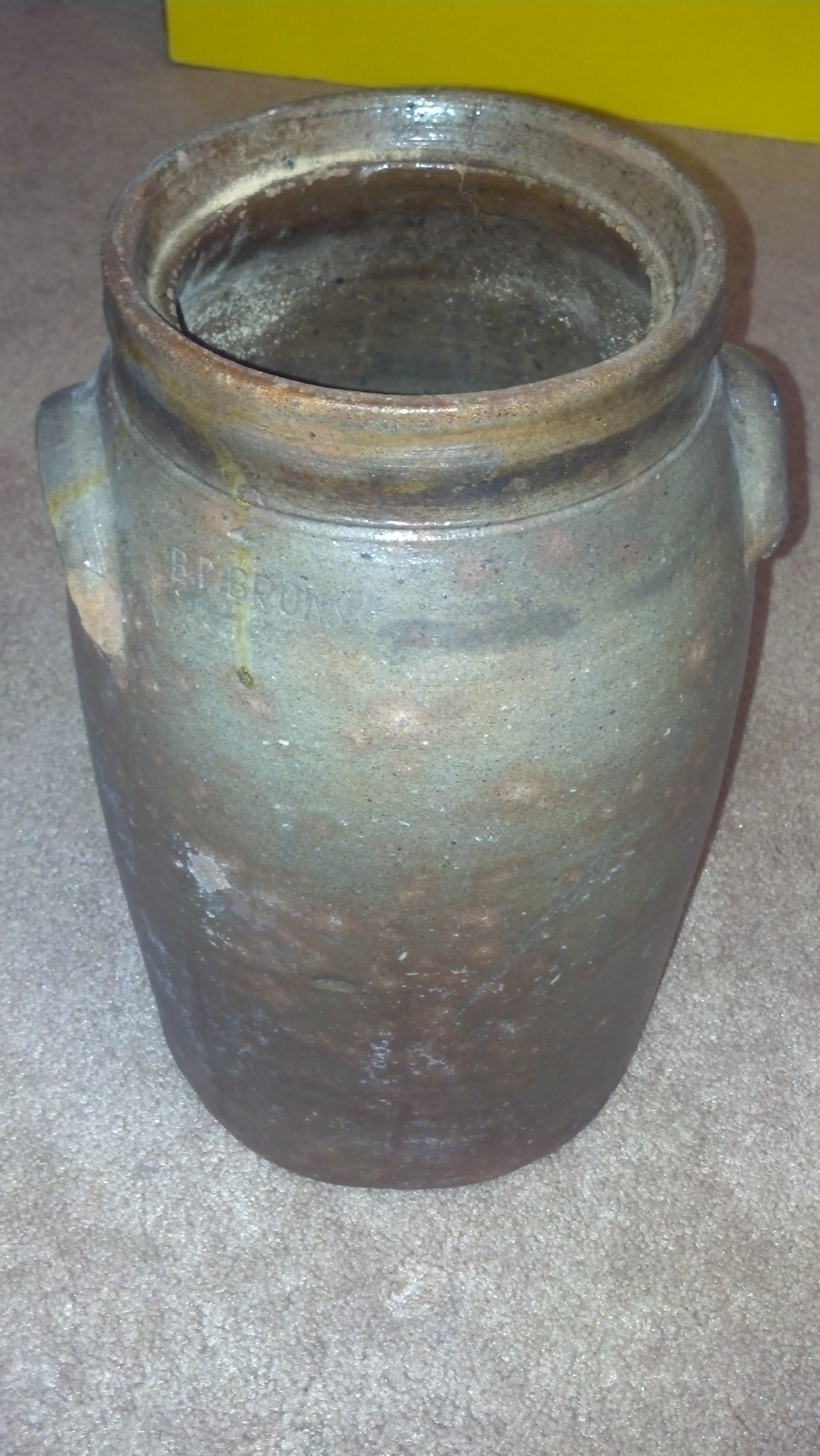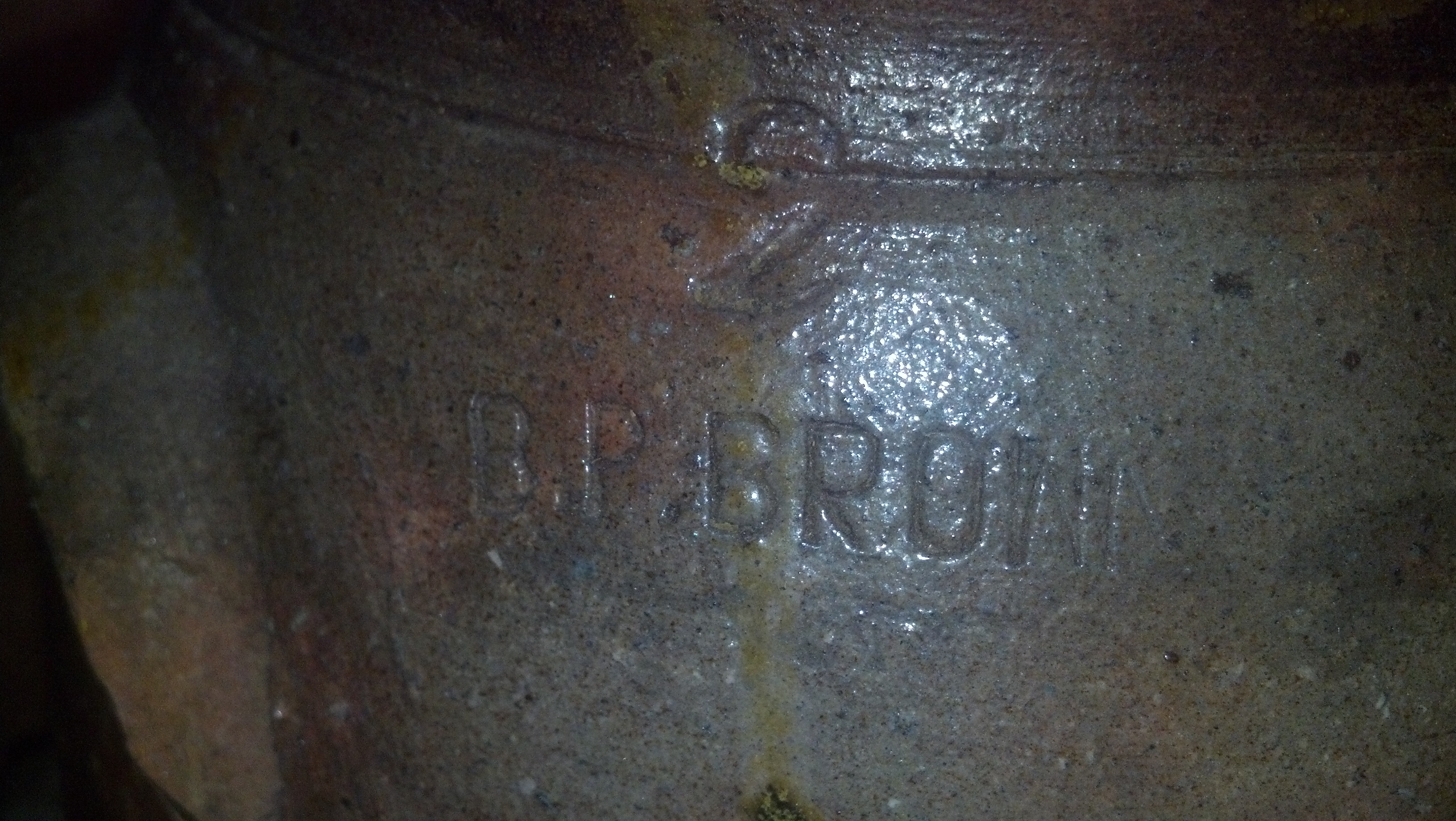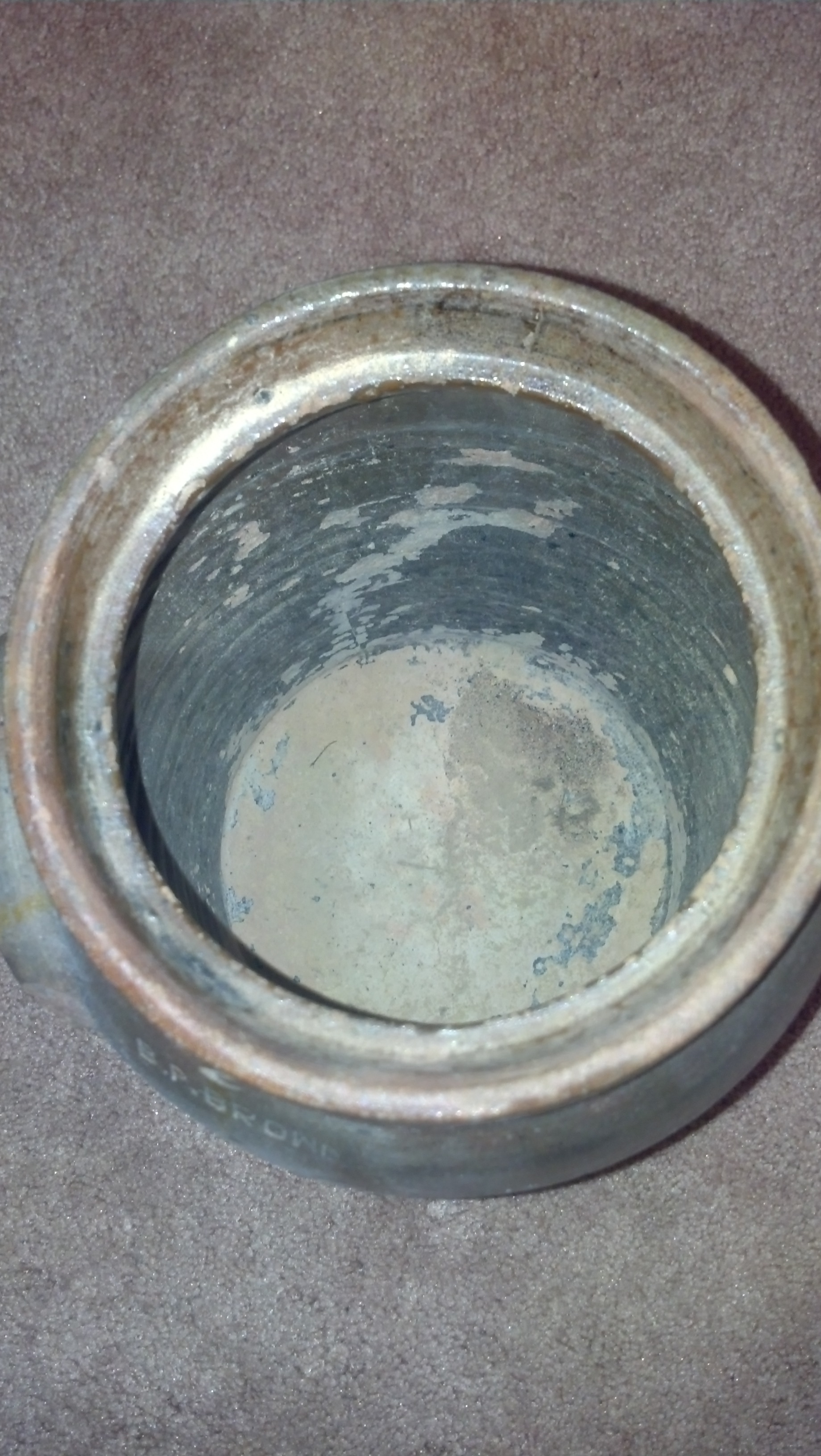 I only know my dad's parent had this and then my parents had this in the house as I grew up. The only marks are a "2" and "B. P. Brown." I'd love some more information if anyone can give it. I've attached some pictures of the jug.