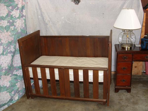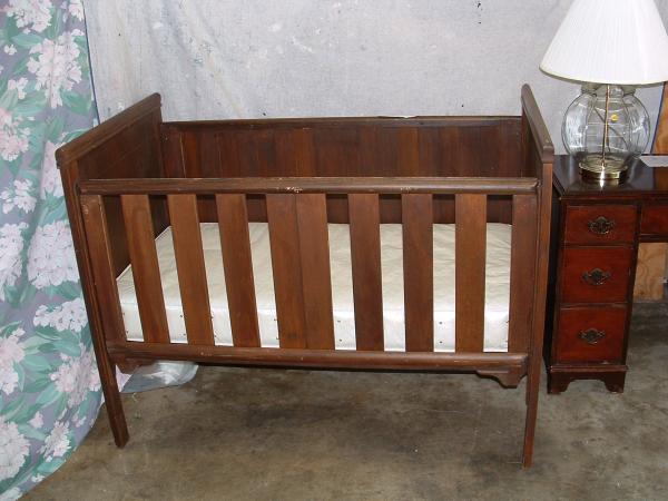 Baby crib and the sides have the slats that can be closed or open.