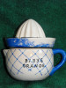 We inherited my husband's grandmother's house and this is one of the items that we have found. It is in really good condition. The paint is more vivid than the pictures make it seem. There are superficial lines on the inside of the lid, but it doesn't have any real cracks or chips.