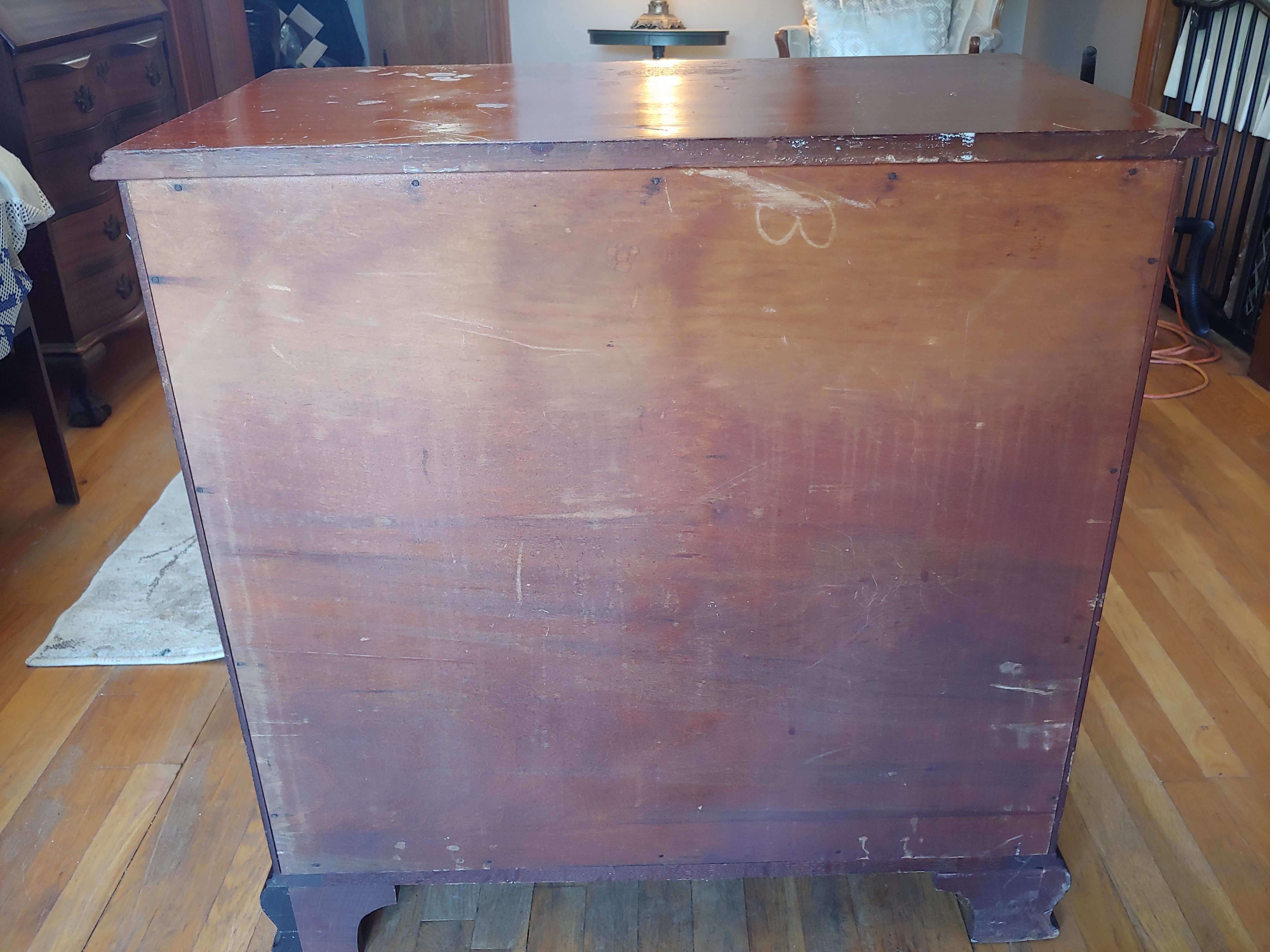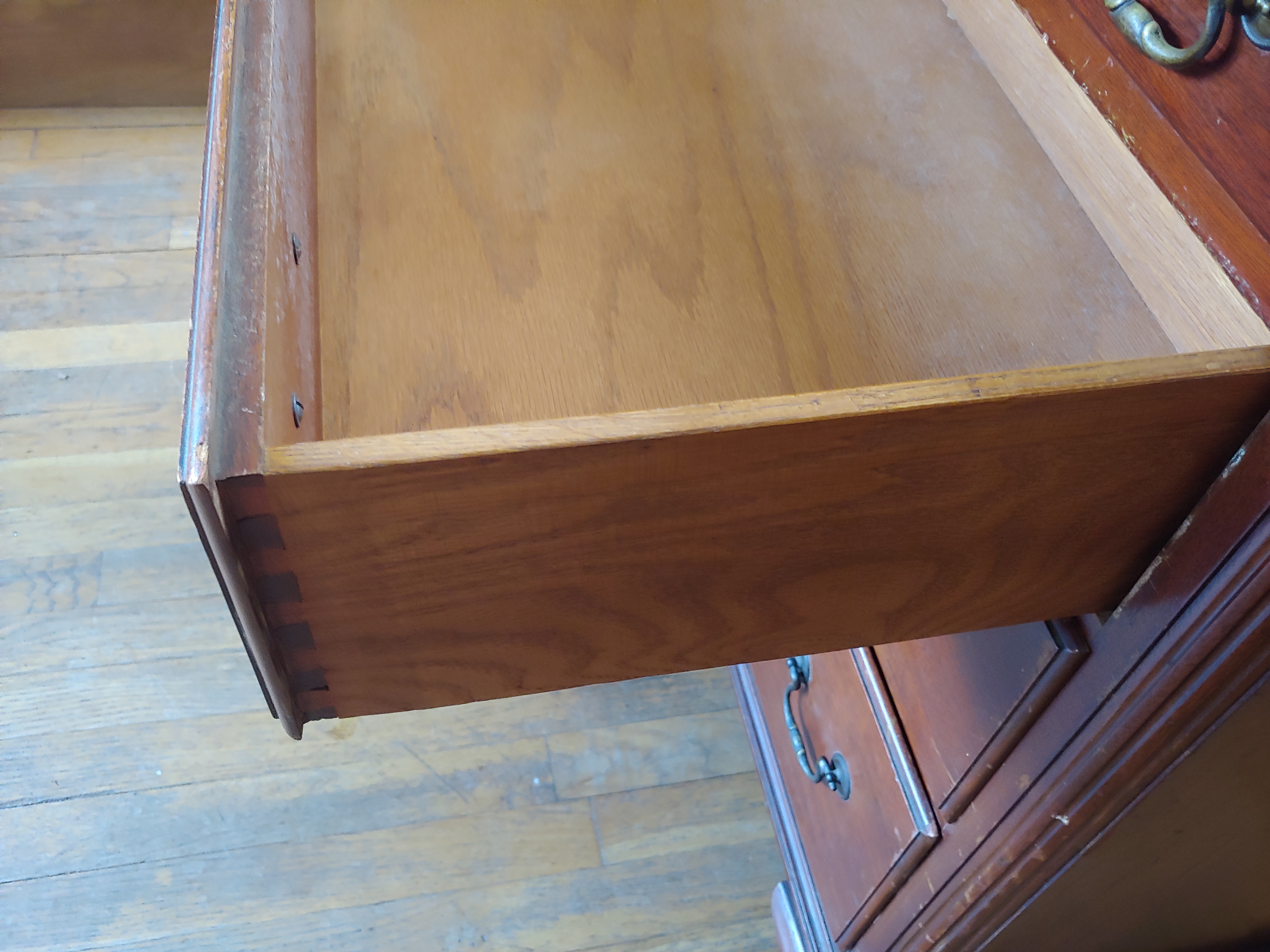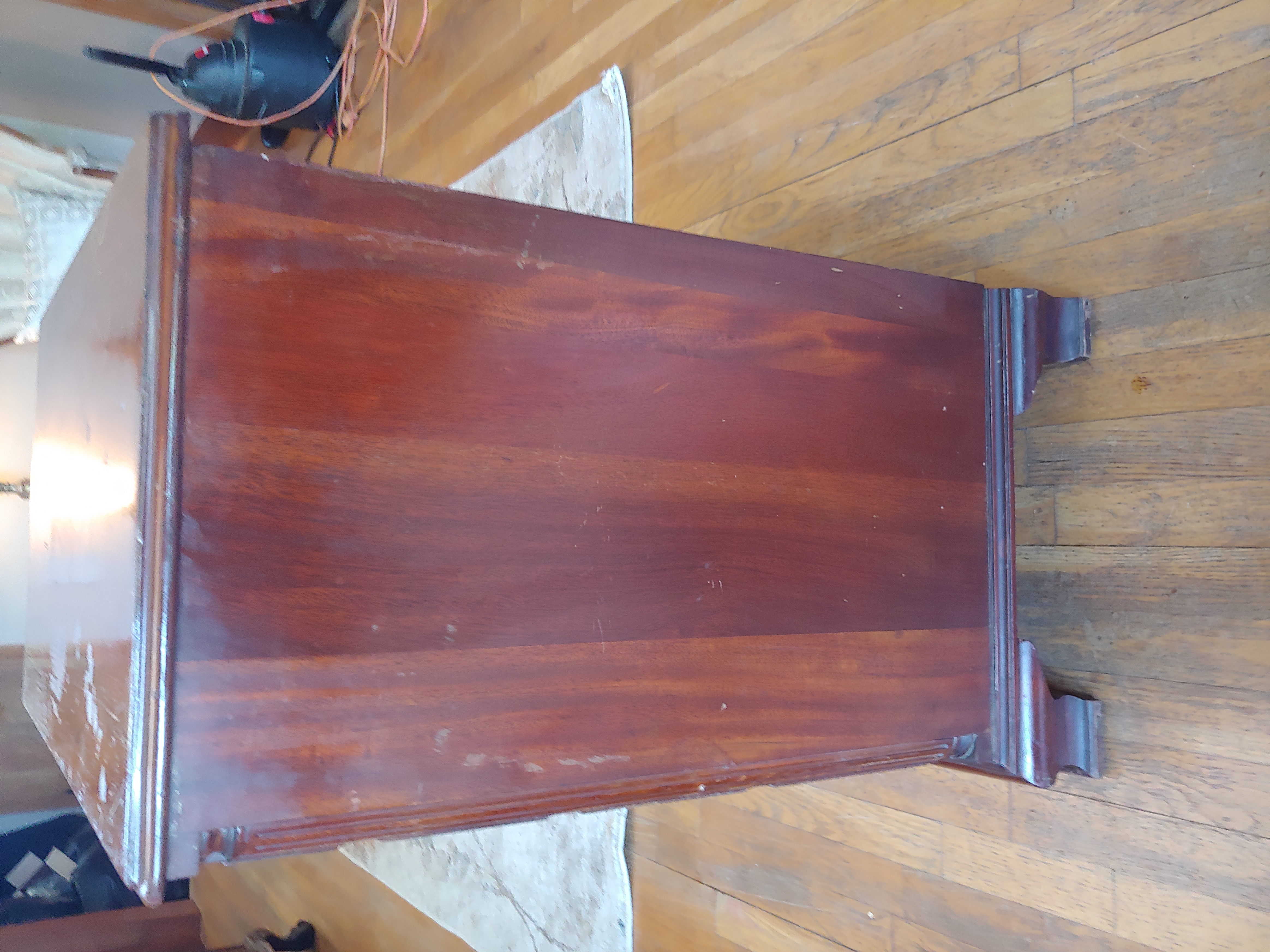 If some one could help me identify the year style and worth that would be great as im not all that familiar with antique furniture , it has 4 graduated draws with a slide out on top (missing the pulls) and fluted columns on the front corners. The drawers are dove tailed and the pulls have some number on the back i believe "669611"