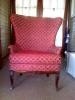 This chair is solid wood but I am not sure of the species. There are no markings or manufacturer anywhere that I can find. It appears to have the original upholstery with no stains, tears or blemishes at all. The underside of the seat is basket woven strapping. The rocking function is a spring mechanism. Any information is much appreciated. Thank you for your help!