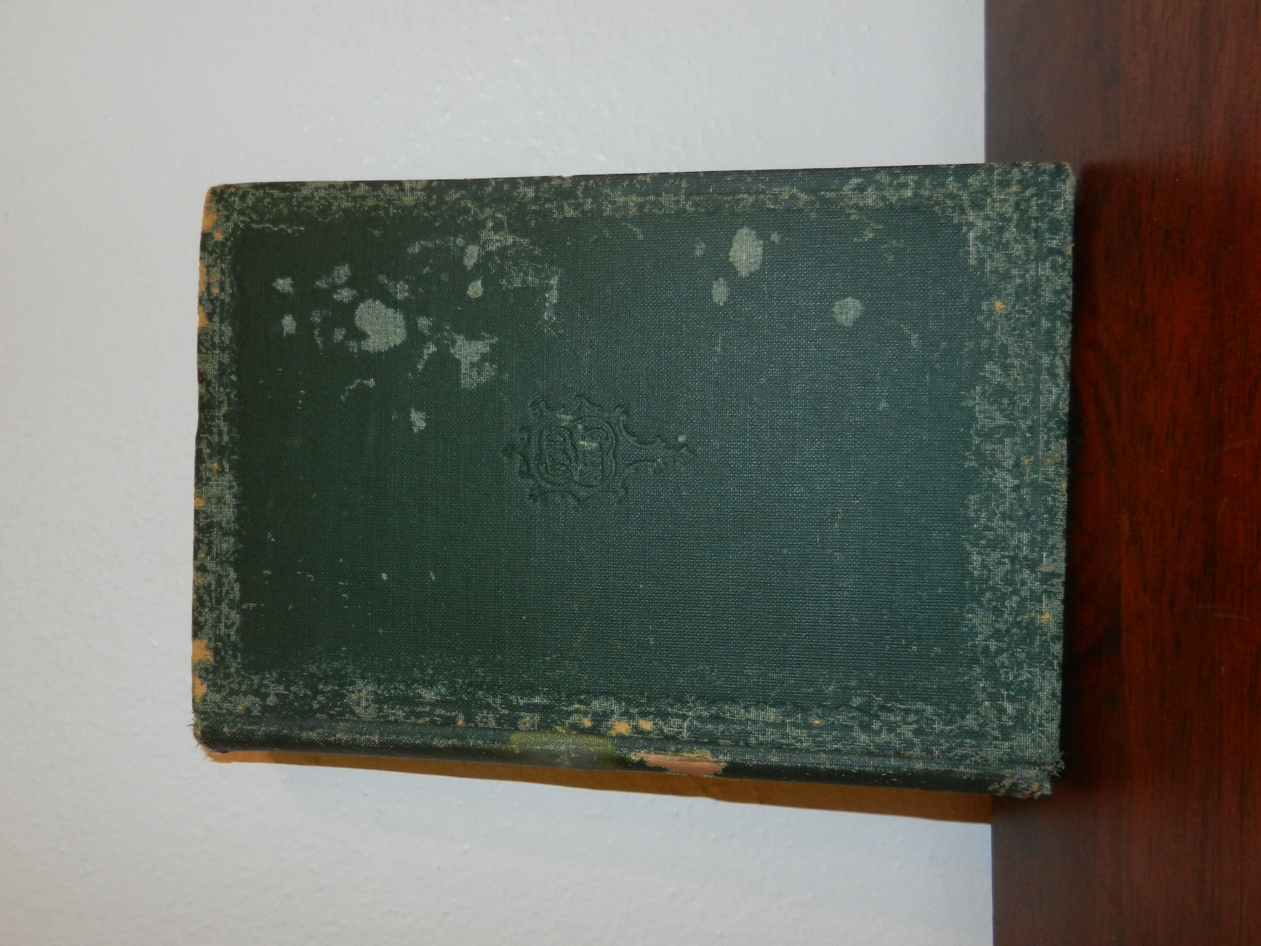 The book is green cloth bound with some kind of a stamp on the front cover as well as the spine and it says something within the stamp that I cannot make out.