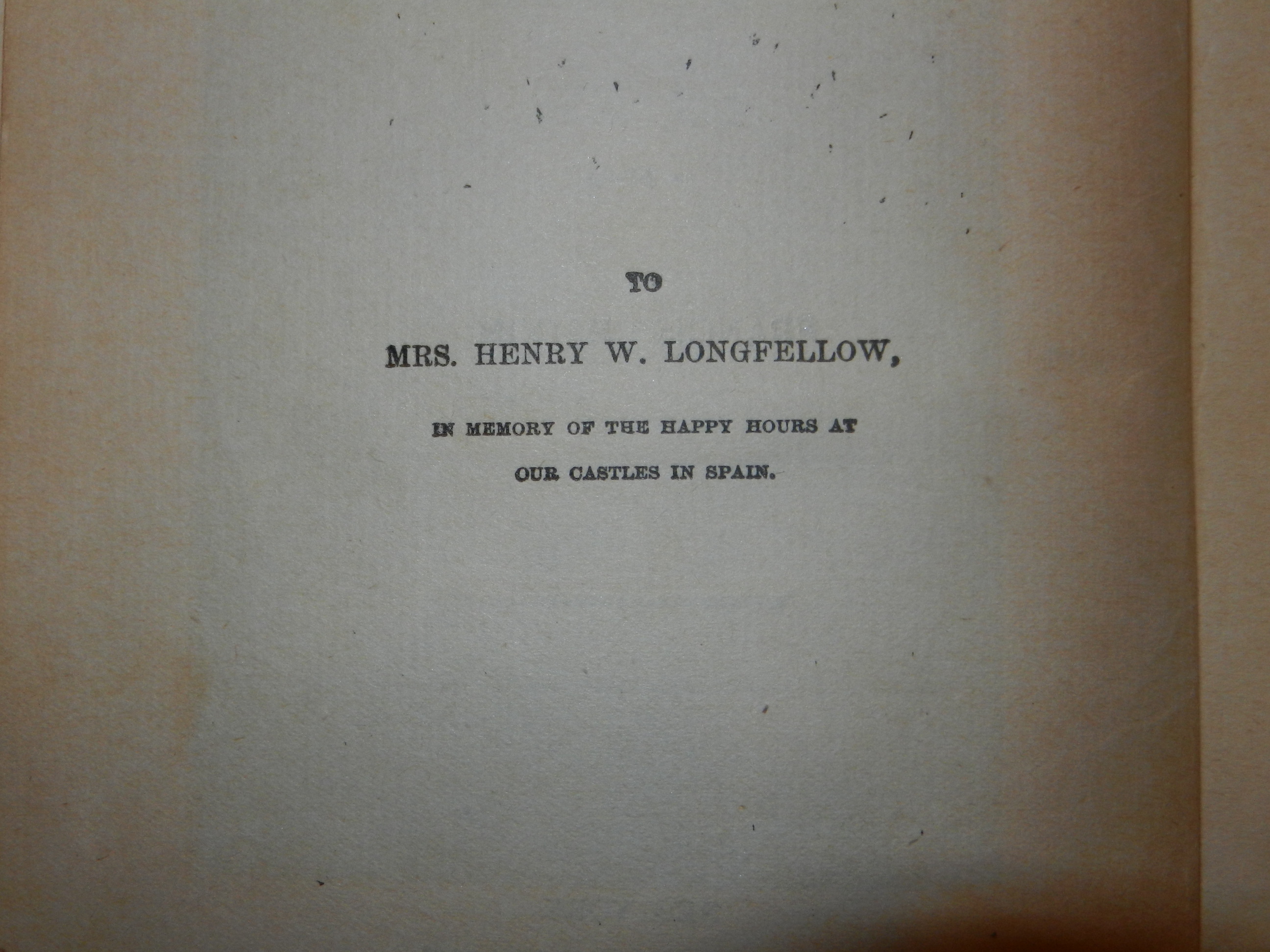 On the dedication page it reads "To Mrs. Henry W. Longfellow in Memory of the Happy Hours at our Castles in Spain"