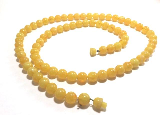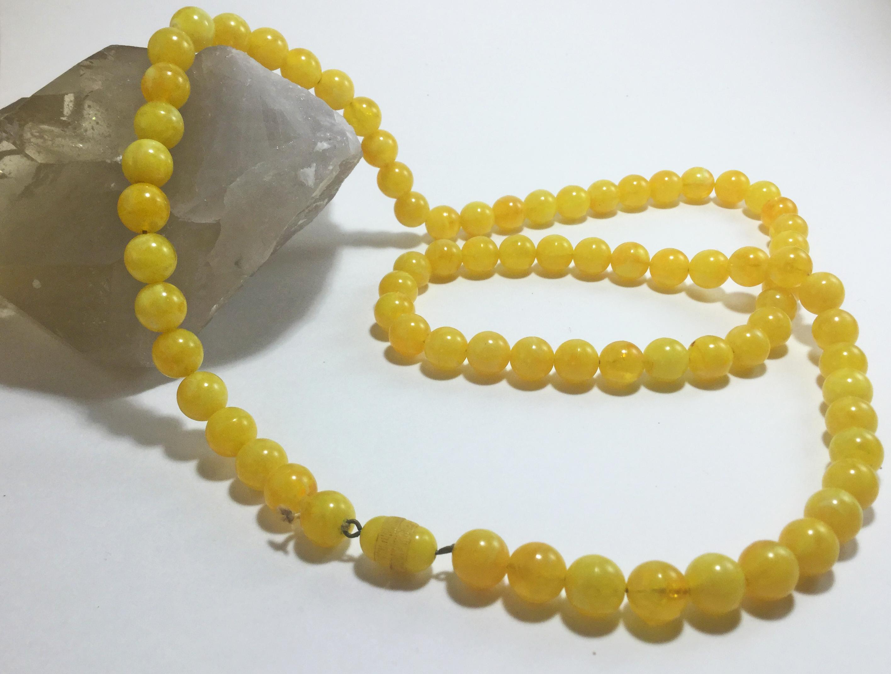 30 1/2 inch Bakelite necklace, mustard colored beads, screw in working clasp. Probably from the late 50's early 60's.