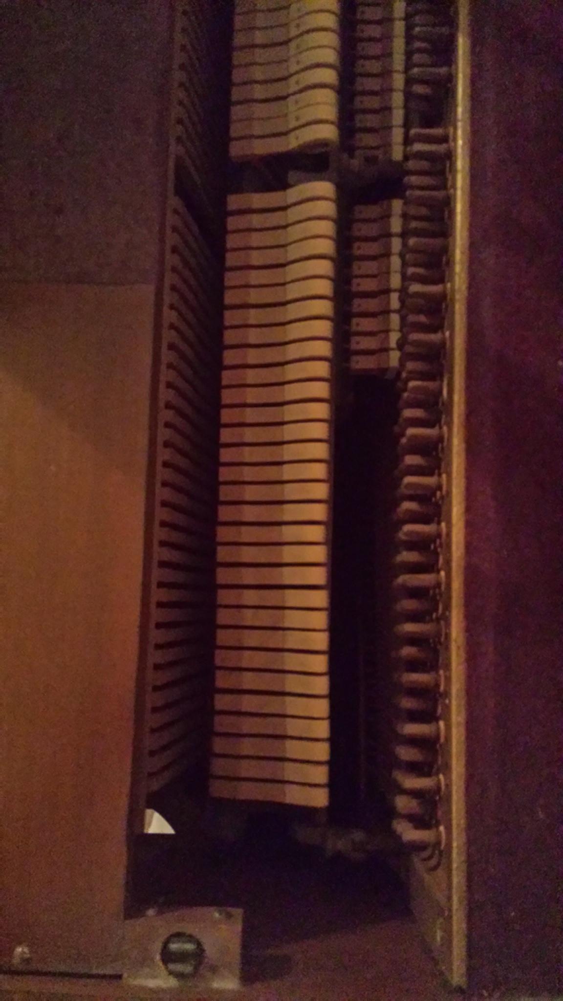 There are some interesting pencil marks still on the wood inside, like where it was marked to cut at a specific angle, and there is a symbol under the cover for the keys that looks similar to a Christian Fish symbol, but looks like, from where it's layed, it would've had to have been marked prior to installing the cover, which I found interesting and have included a picture of with this submission.