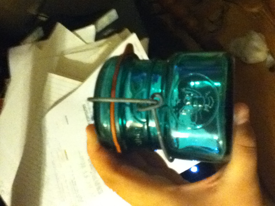 Ball Ideal Mason Jar.Words Wire Side Are On it along with not for home canning and some kind of a seal with an eagle with a star above its head.Numbers on bottom are 8 and 11.Really Dark Blue.