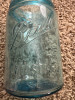 It is aqua blue in color, and has a rough circular scar on the bottom, also the #10 on the bottom. The mold seams run all the way to the top of the jar, The top is a screw type shoulder seal ground glass. No lid. It has a few microscopic chips around the outside at the top off the jar. Barely noticeable to the naked eye. There are small air bubbles throughout the jar. The year of production is 1913 or 1914. It is original.
