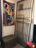 Two cast iron Uncle Sam banks. They have a bit of rust on them however, when you depress the button behind the Uncle's, their arms drop the coin into the purse, which opens allowing the coin to go into the bank. One is taller than the other, maybe from a different year, and the taller one looks to be in better condition than the other.