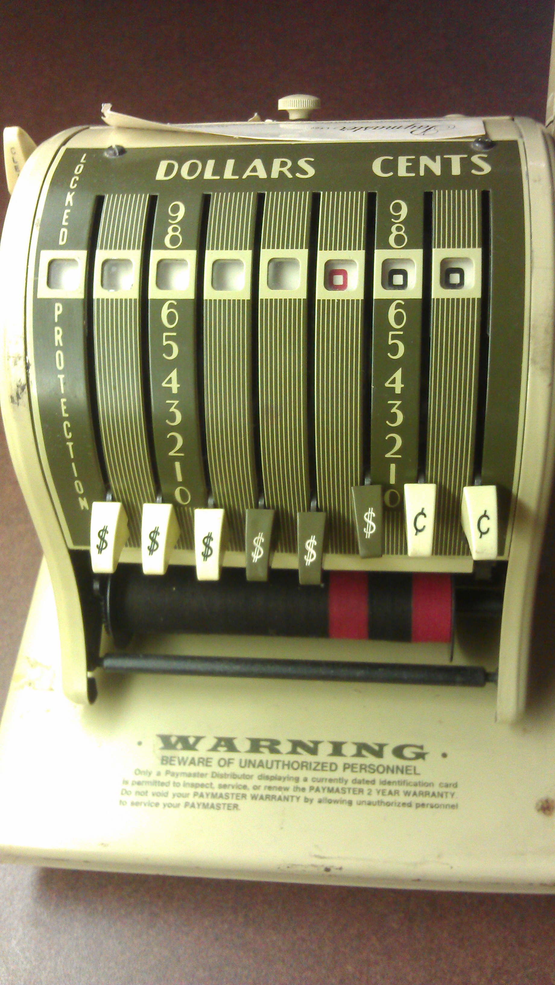 This old press allow printing of numbers on banknotes.