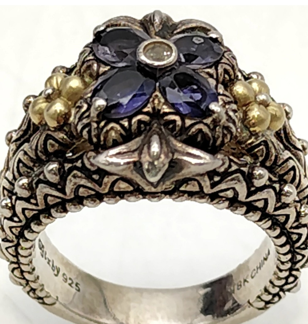 Barbara Bixby Sterling Silver 18K Yellow Gold White Topaz Rhodolite Garnet Ring. Pre owned.