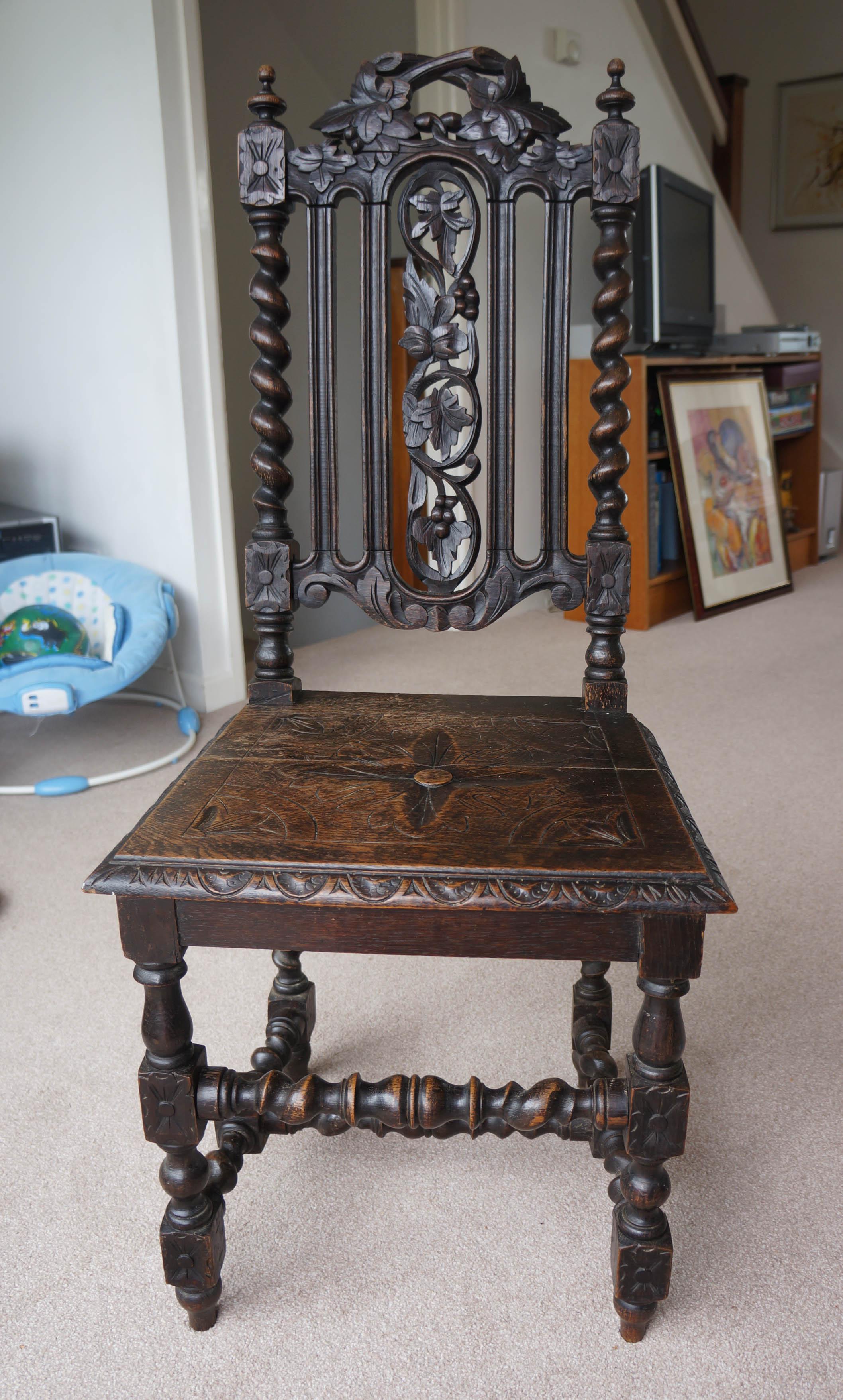 barley twist, carved wooden chair. Probably 1910-1920's, french