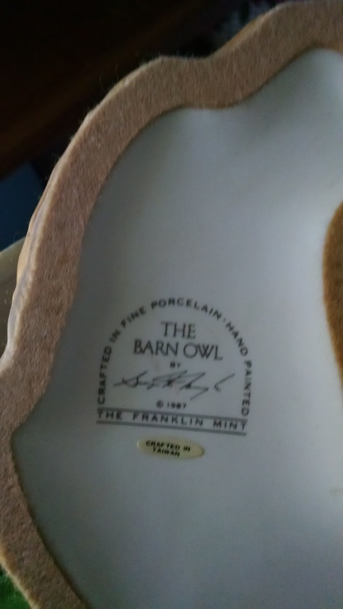 Fine porcelain barn owl, Franklin Mint, made in taiwan.