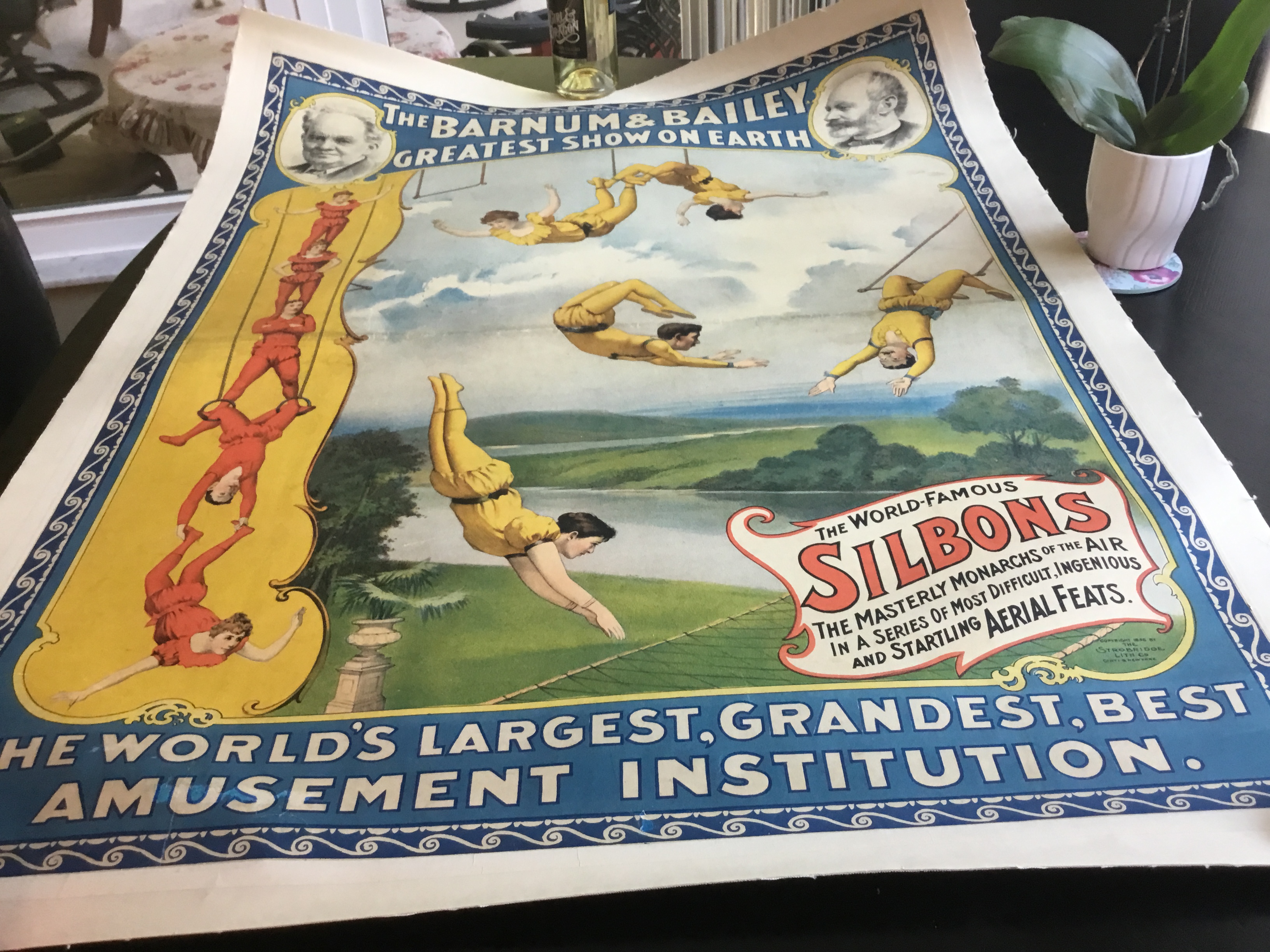 circus poster showing The World Famous SILBONS dated 1896 measuring 41”x31” approx,one of a box of posters belonging to an elderly relative,not sure how to proceed,any advice would be appreciated,thank you
