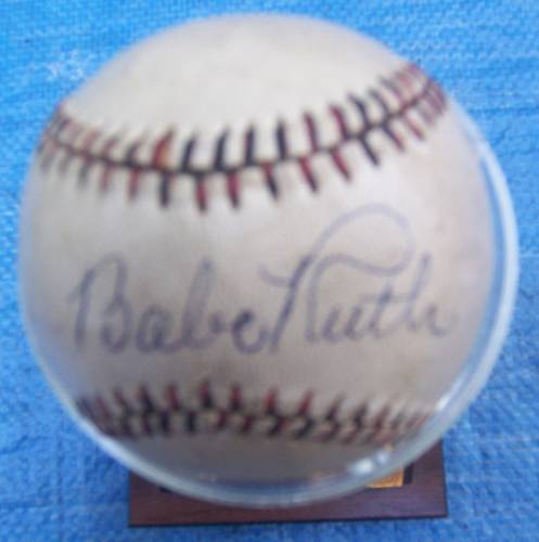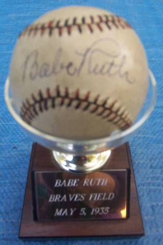 Autographed Base ball given to Brendan Bolan at a baseball game at Brave's field where Babe Ruth played. We also have a picture of Babe Ruth and Brendan Bolan with the baseball.