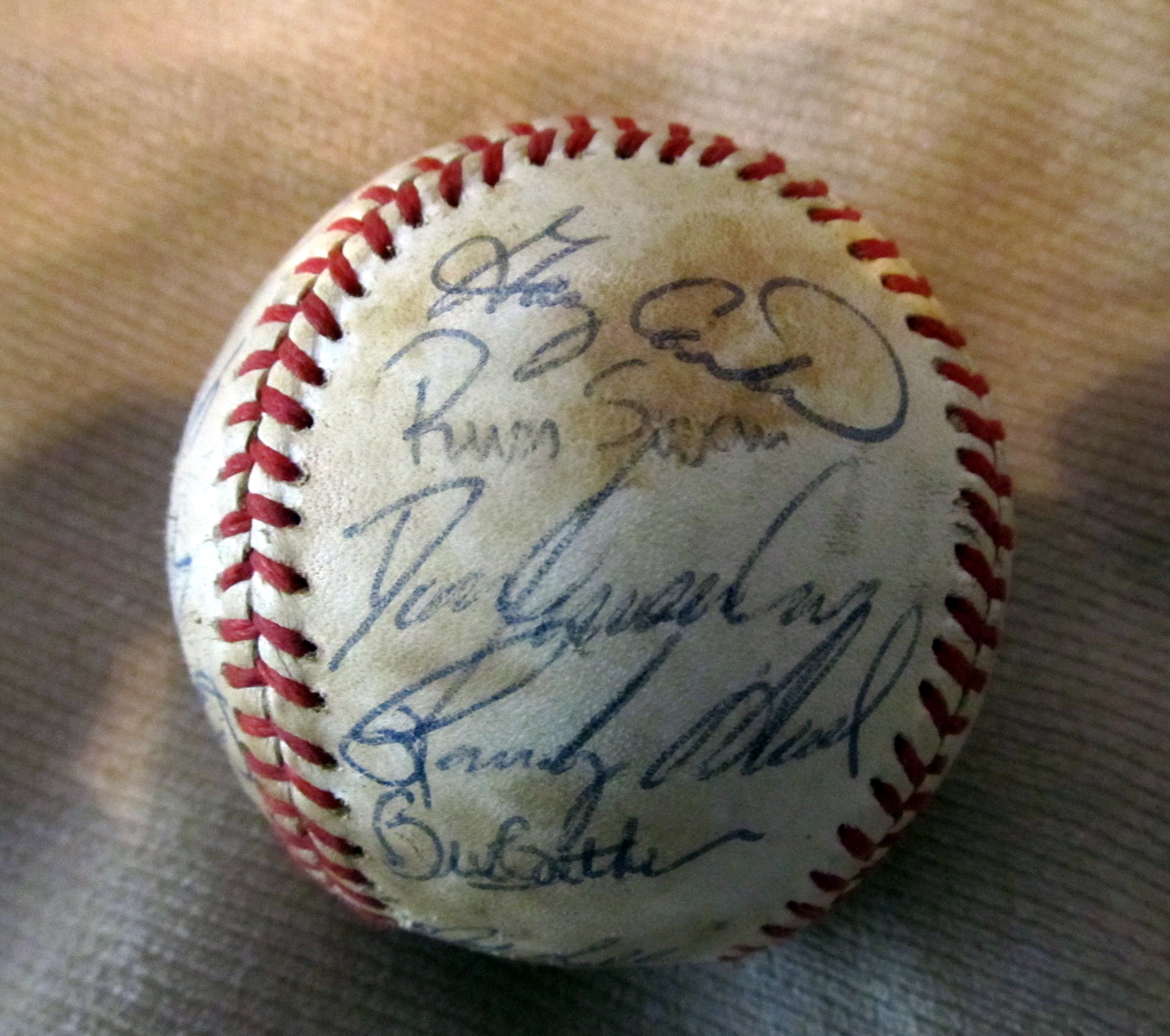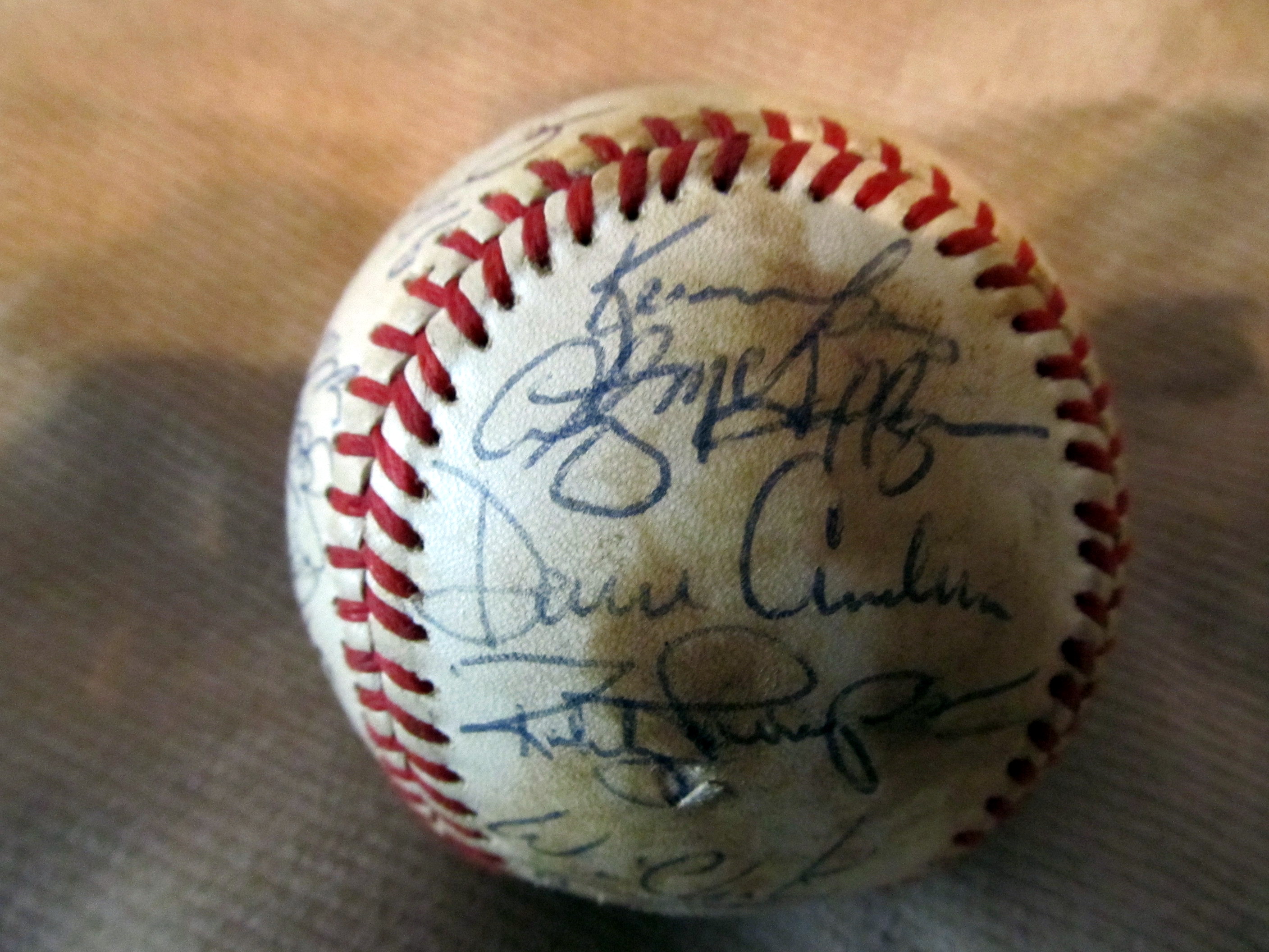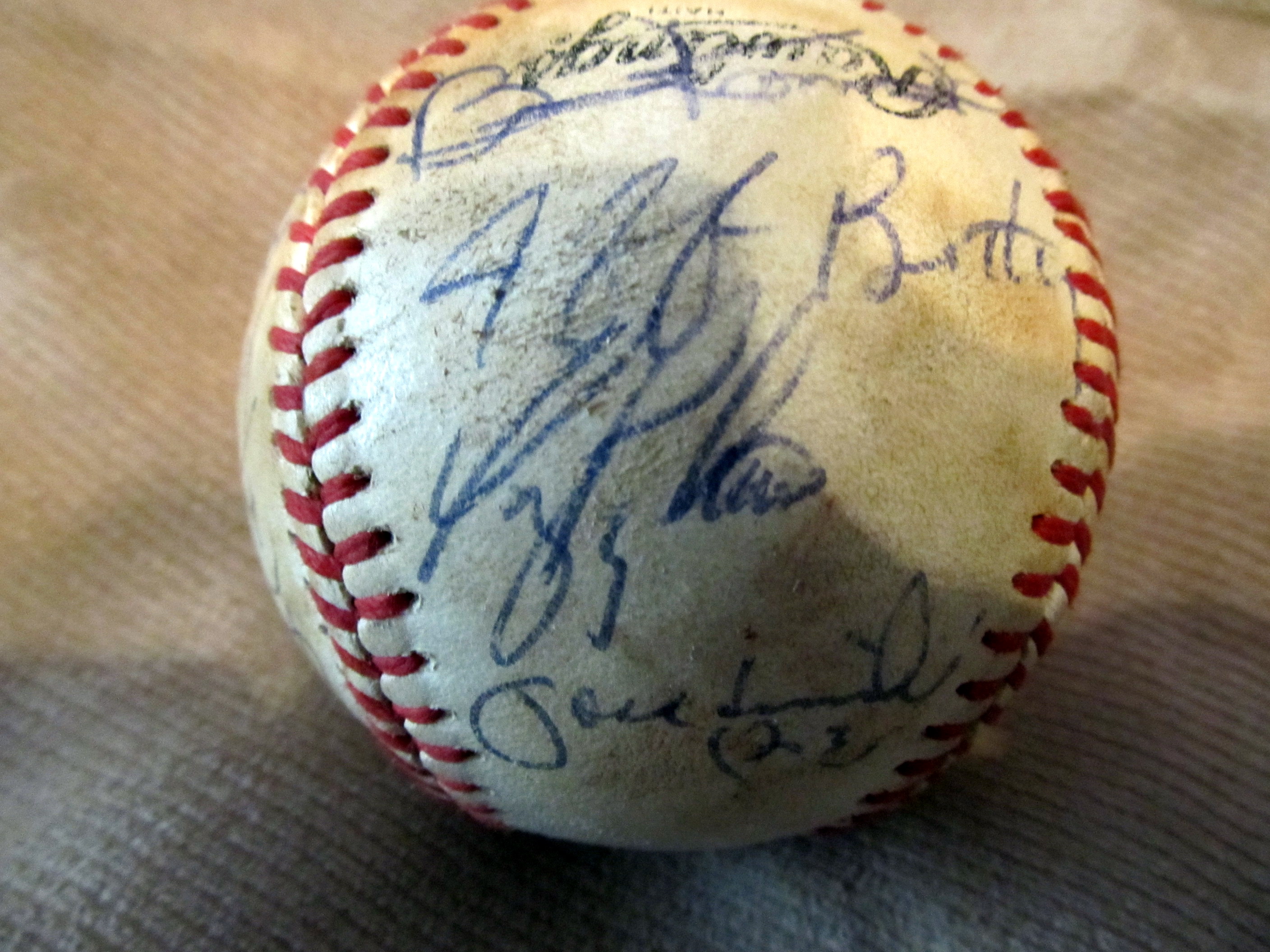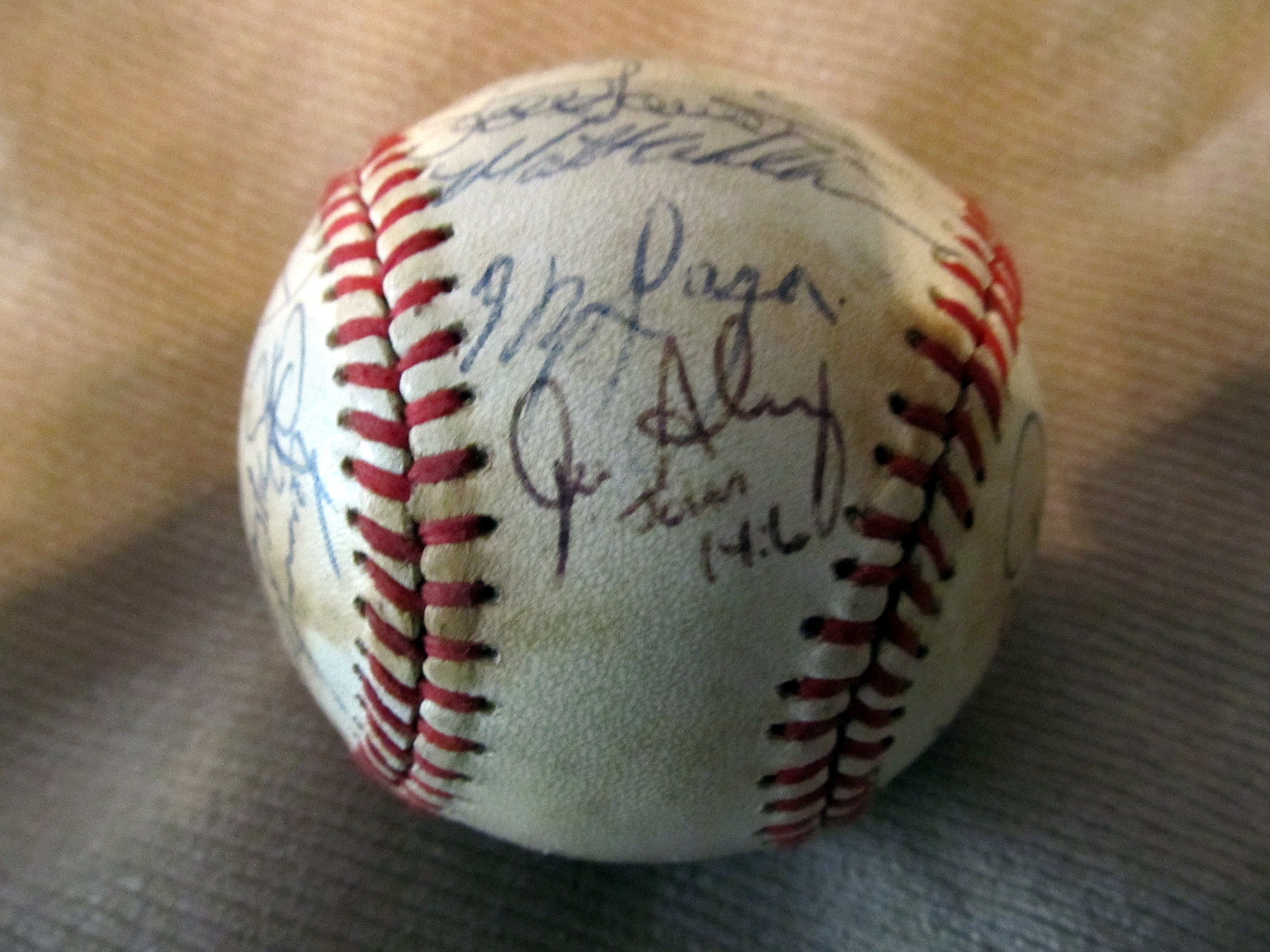This is a baseball I got at an auction. On the box that it was in someone wrote ( baseball dad gave me ) It has about 16 signatures on it a few I can make out. Gary Carter, Will Clark, Bob Lillis, Dan Quisenbury. The others I cant make out. Probley need an sigature expert to find out. I would like to know what it is worth. thank you. Dave