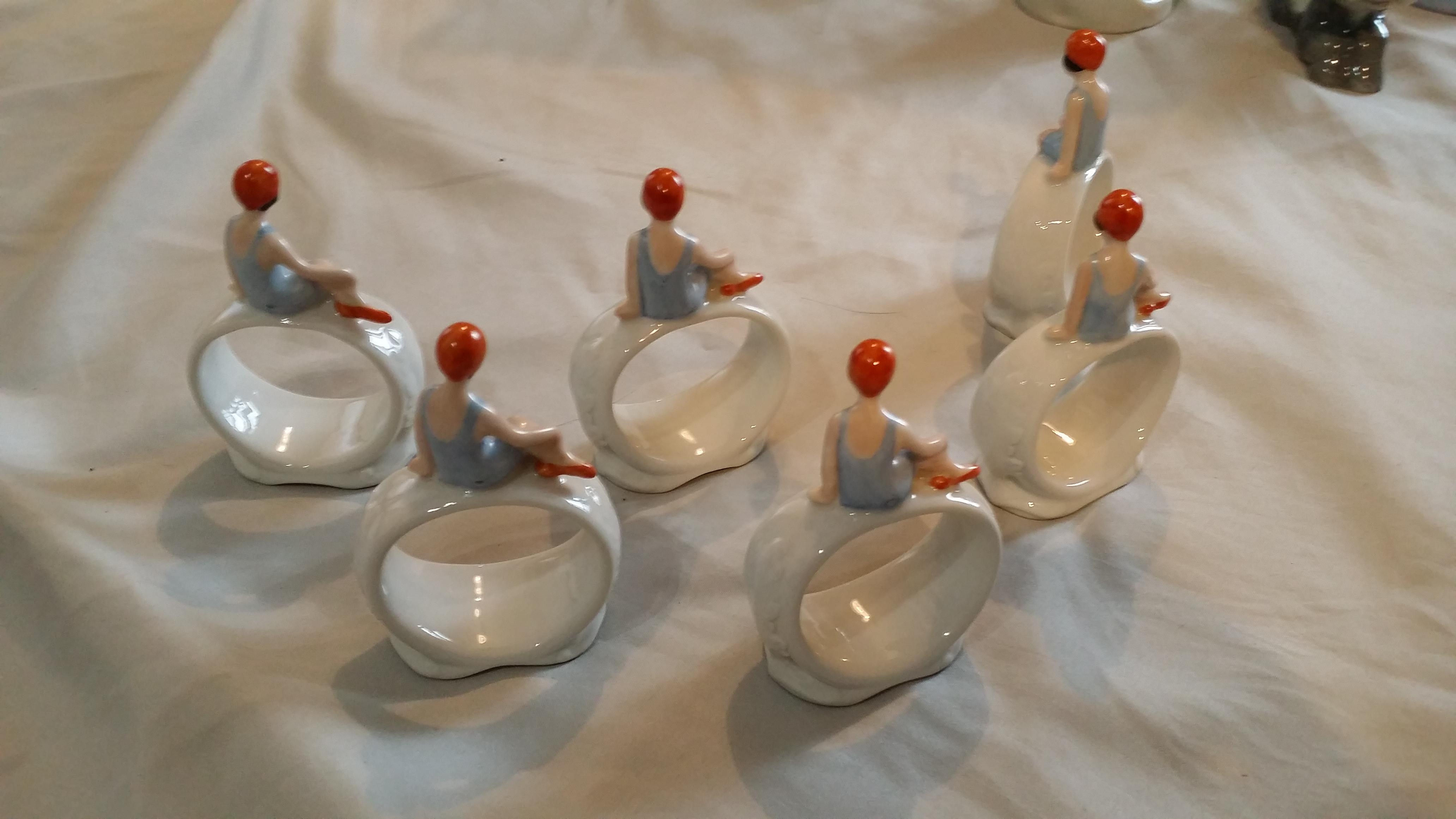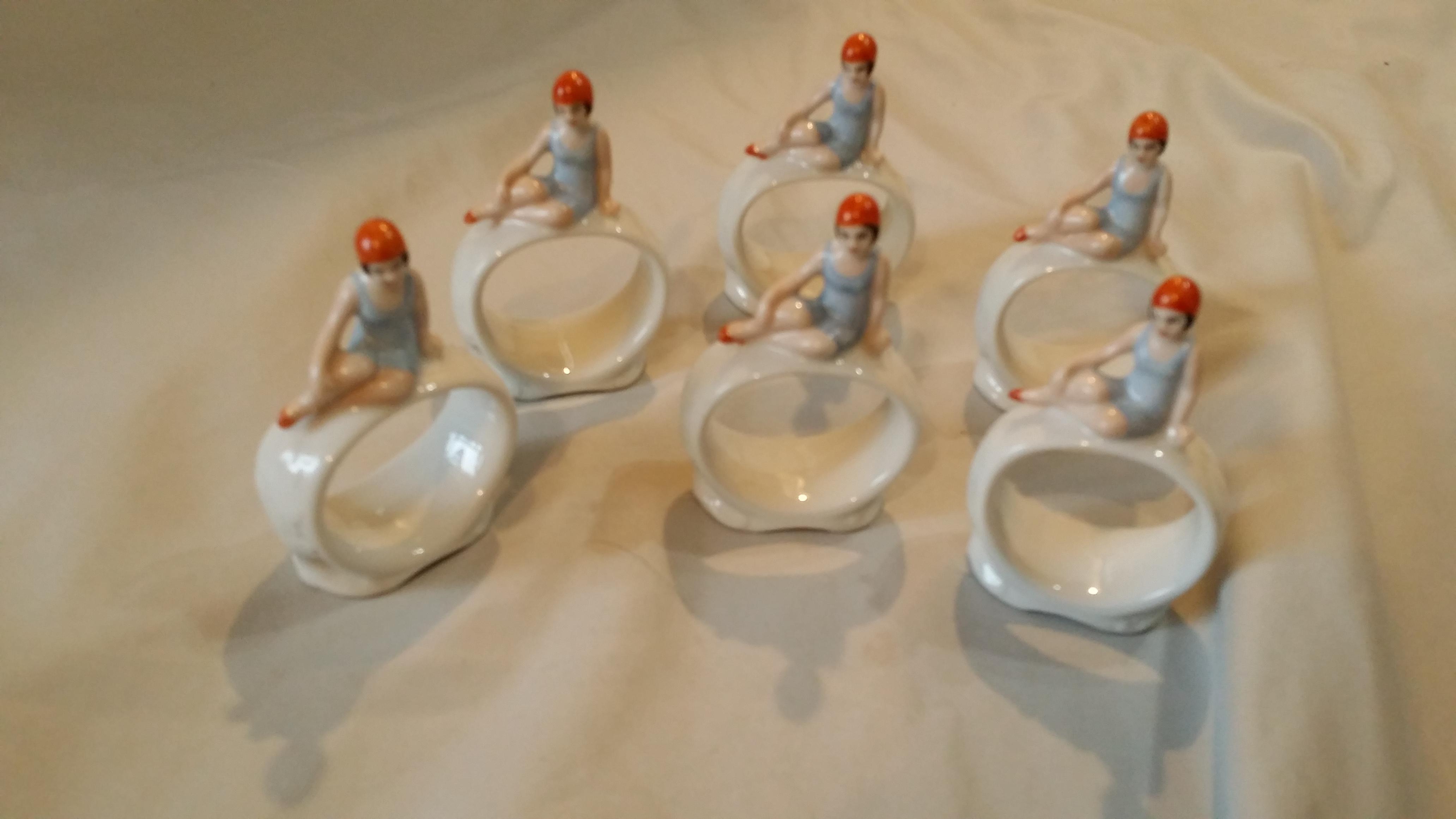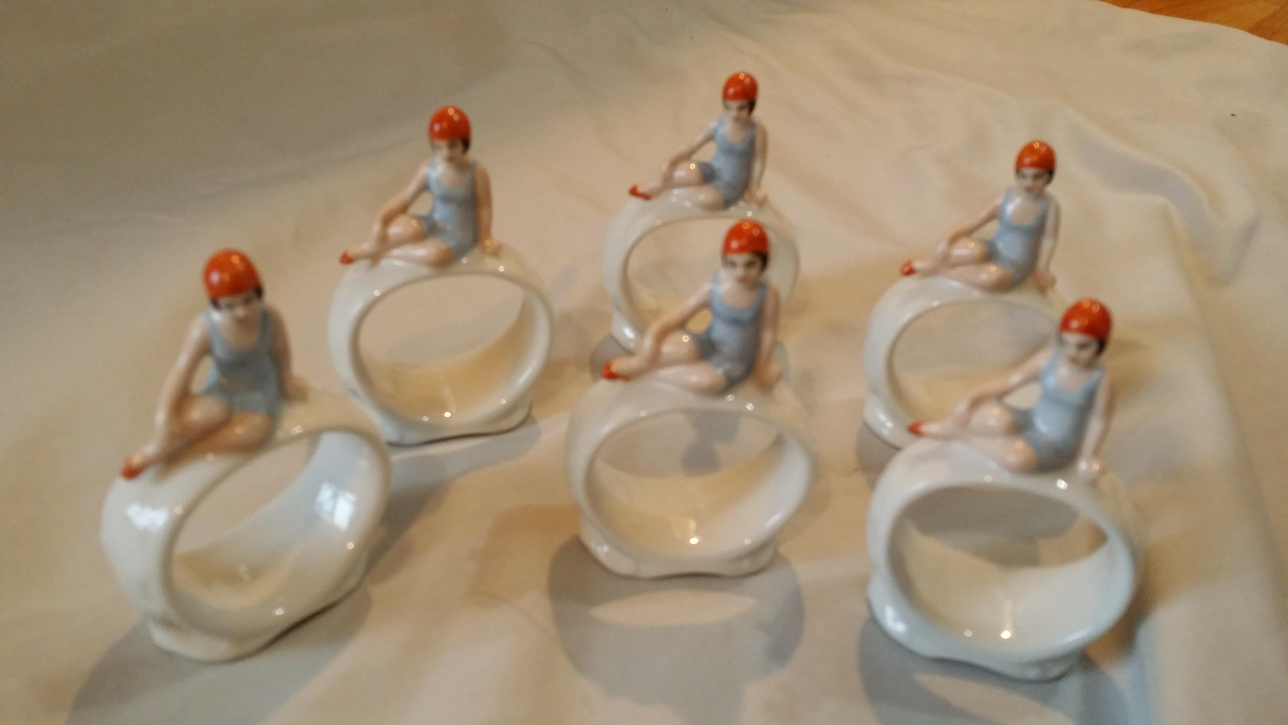 Bathing beauty napkin ring holders set of 6 in mint condition.
