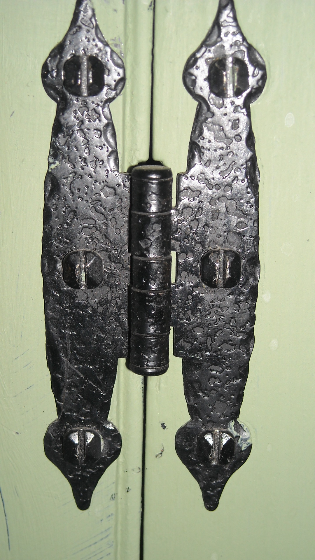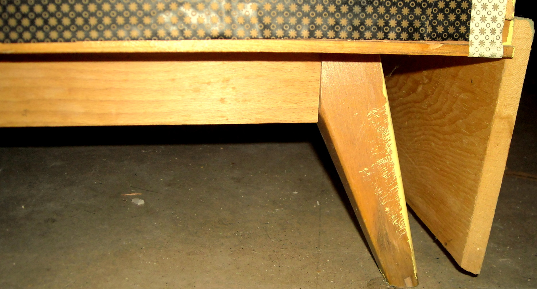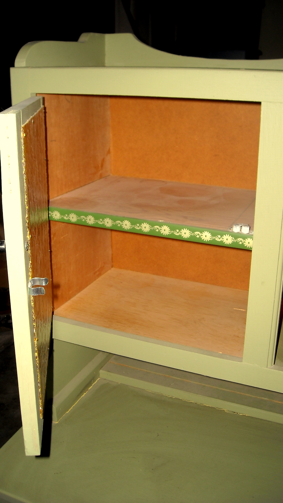 Hutch does have Baumritter Tag on one of the drawers but in looking at this piece I did notice that the top cabinet (the actually cabinet door & not the yellow plastic) that have the yellow circle plastic cabinet fronts look uneven in the way they are cut. So I was wondering if Baumritter would put out something like this or is the top part of the hutch from another peice of furniture or homemade by the previous owner & was married to the Baumritter bottom? I could not find any Baumritter Hutch that looked like this,even without the paint. I have another posting of a Dry Sink that came in the same lot as this and it appears that the hardware had been changed on both to match each other & I would guess that the hardware was changed in the late 60's, from the other items I acquired. What year did Baumritter put metal like stickers on furniture and when did they change to stamping furniture instead?If you know anything about this item or could possibly tell me what era you think it's from? Also if you think it's from 2 different peices? What kind of wood you think it might be that is so heavy & of course an idea of what it would be worth. Thank you so much to anyone that could help me out.