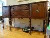 Purchased 5 years ago as a gift for my wife from a private seller. The seller stated that the piece belonged to his wife's family in Germany and that they were going to throw it away. He liked the furniture so he payed to have it shipped to him. The it features tow doors on the right that open to a space that has a shelf. On the left the door opens to drawers as well as a small storage space as well. There is also a leaf on each end that pulls out for added counter height. All doors lock and latch via a skeleton key.